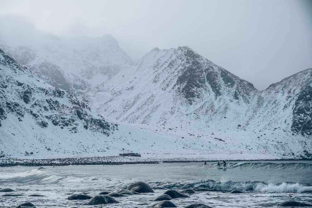 Vyerna från topparna vi tog oss till var alldeles enastående och som om inte det hade varit tillräckligt lyckades vi pricka in perfekta vågor och förhållanden för surf. Vi tog oss till den lilla byn Unstad, där en kan hyra surfbrädor och paddla ut bland vågorna. Unstad är Lofotens mest populära surfdestination dit folk tar sig året runt för att avnjuta kalla men fina vågor.