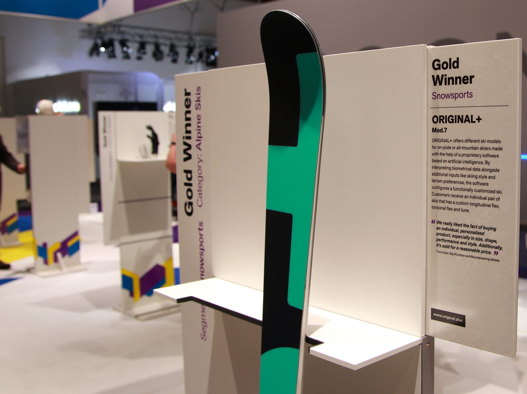 Skidmärket Orignal + fick guld för sin modell ”Mod.7”. Grejen med denna skida är att den kommer anpassad för just dig, utan att kosta skjortan. Hur du åker skidor, vilket typ av terräng du helst åker i samt ”biometriska” data är det som avgöra vad för någon skida som fabriken hos Original + spottar ur sig. Denna personliga och unika produkt gillade juryn skarpt.
