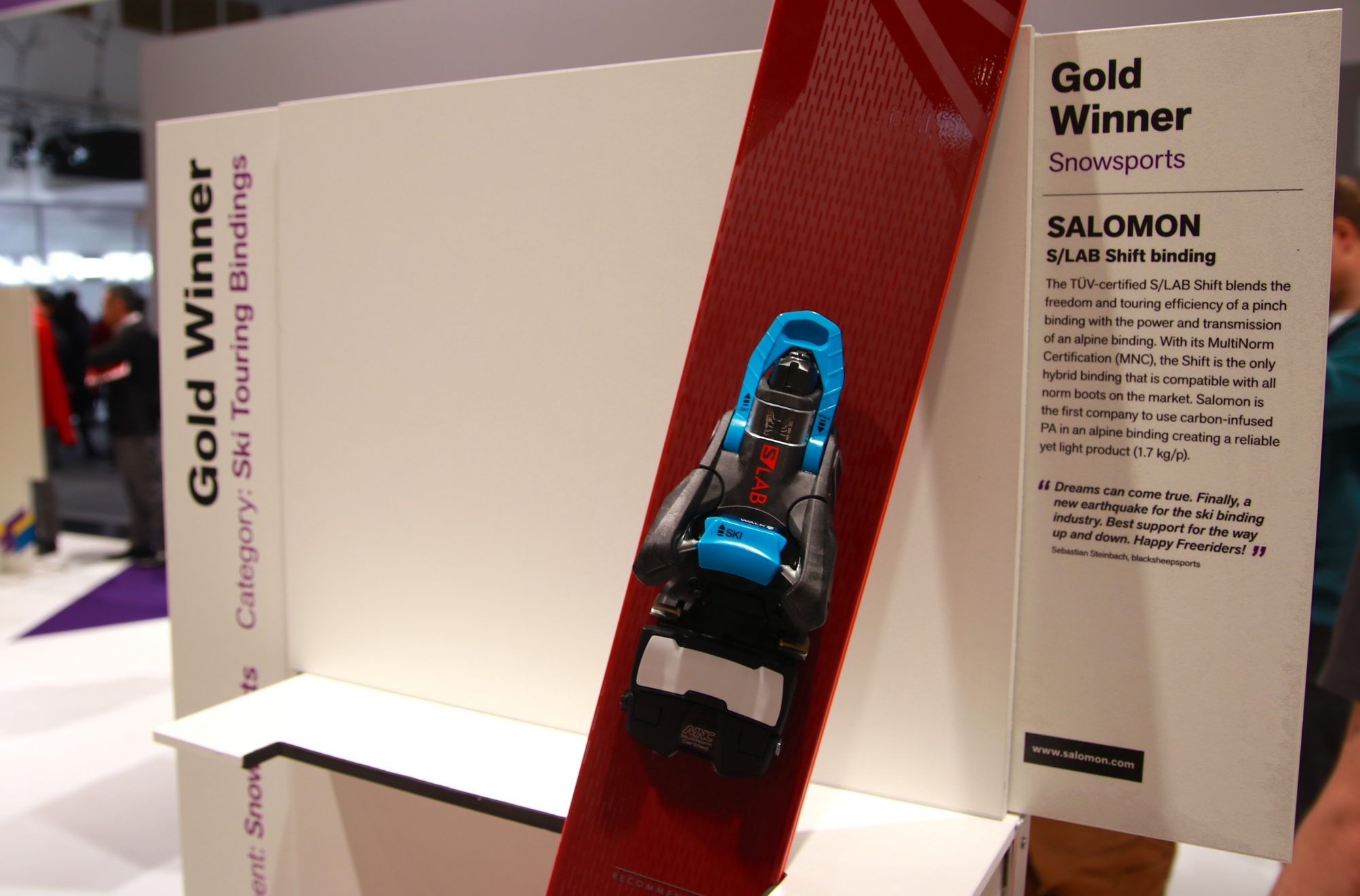Även juryn på ISPO anser att Salomons nya hybridbindning Shift är värd att prisa. Techbindning med bra gåläge uppför, ren alpinbindning utför. Frågan är dock vad juryn menade när den refererade till ”pinch bindning”, men som ni trogna Freeride-läsare vet kan korrekturfel även smyga sig in hos den mest sorgfälliga skribent. Juryn på ISPO var också imponerade av fransoserna på Salomons sätt att använda karbon in i PA-plast. Att på detta vis chocka bindningsvärlden med en fin kombination av tur- och åkglädje fick juryn på ISPO slutligen att utbrista ”Happy Freeriders!”. Mer om Shift finns på Freeride: lansering, unboxing-video och ett test (scoren där var 500 av 600 höjdmeter). Oklart om det var den klarblåa färgen eller något annat som gjorde att Salomon Shift vann och inte Atomic Shift…
