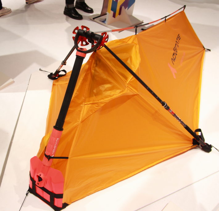 Advenate Hybrid är en kombinerad lavinspade och sond. Lägg till ”Pro” i namnet så har du även bivack-tyget. Addera dina stavar till detta och du har en lite koja för oväntat blåsiga stunder på berget. Juryn tycket att denna tyska uppfinning vann sin kategori (Snowsport – Safety Equipment)”enkelt” eftersom det är en kompakt, högst funktionell och väl designad produkt.