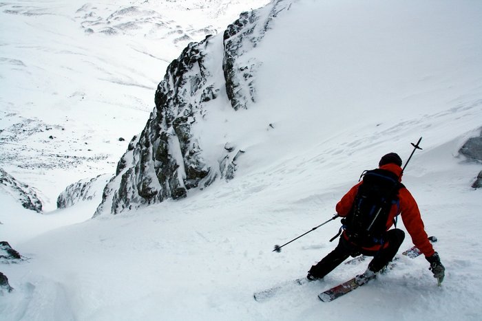 Skantz i en ränna på Gruvfjället i Lunndörrsfjällen