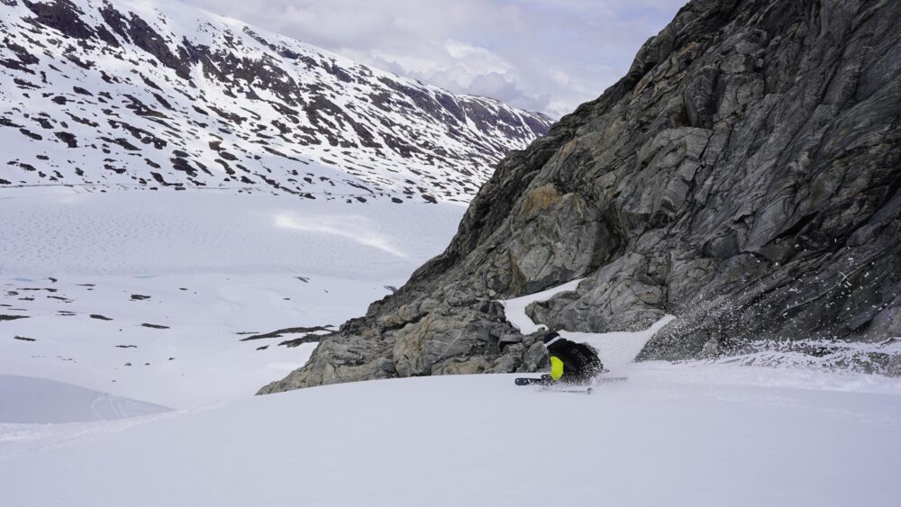 Du behöver inte köpa heldagskort om du ändå planerar att topptura hela dagen. Stryn Sommerski erbjuder enkelkort – perfekt för att ta sig upp till en bra startpunkt för toppturen. Dessa kostar 195 norska, glöm inte egna keycards. Är man extremt snål eller bara hurtig så kan man givetvis gå hela vägen. Vi åkte i parken en dag och turade två olika toppar de två andra dagarna. Vill man finns det möjlighet till catski vilket kostar. Mer om catskiing i Stryn kan ni läsa om här. Vi knatade upp med topptursutrustning vilket är speciellt trevligt om man är ett gäng, på de flackare partierna kan man enkelt gå i bredd och snacka. På det här sättet får du tillgång till området utan att betala för liftåkning du inte nyttjar. Vi träffade även andra människor längs vägen där vissa var ute och i princip rastade hunden.