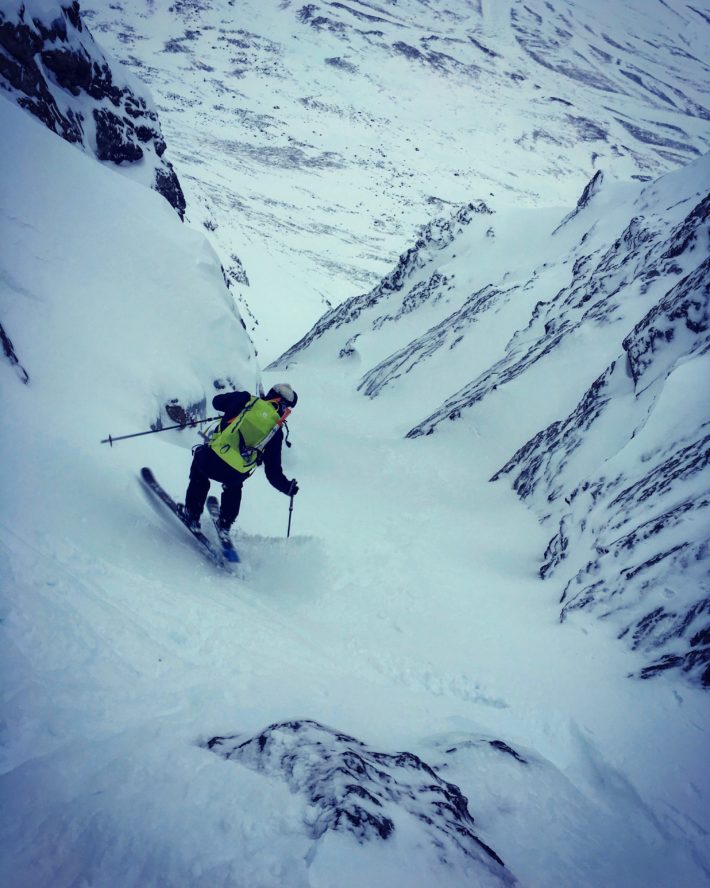 – Dels dagen i Sylarna 27 mars, då jag filmade också (reds. anm. se allra längst ned), men också en tidig decembertur till Lunndörren där det var dåligt med snö men rännan var riktigt smal och brant.