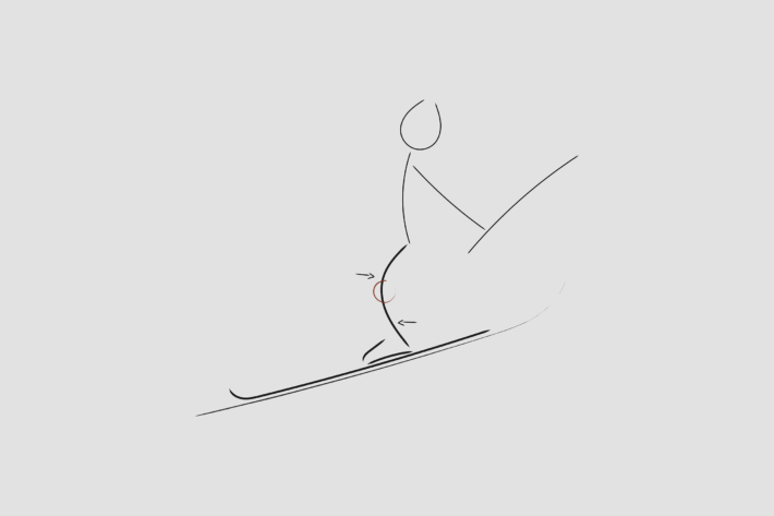 Exempel: Du hamnar i en kraftig och okontrollerad bakvikt samtidigt som skidorna börjar svänga inåt.