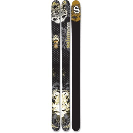på Armadorna sitter de ett par Marker Griphon mitt monterade. Salomon skidorna kommer utan bindning.
