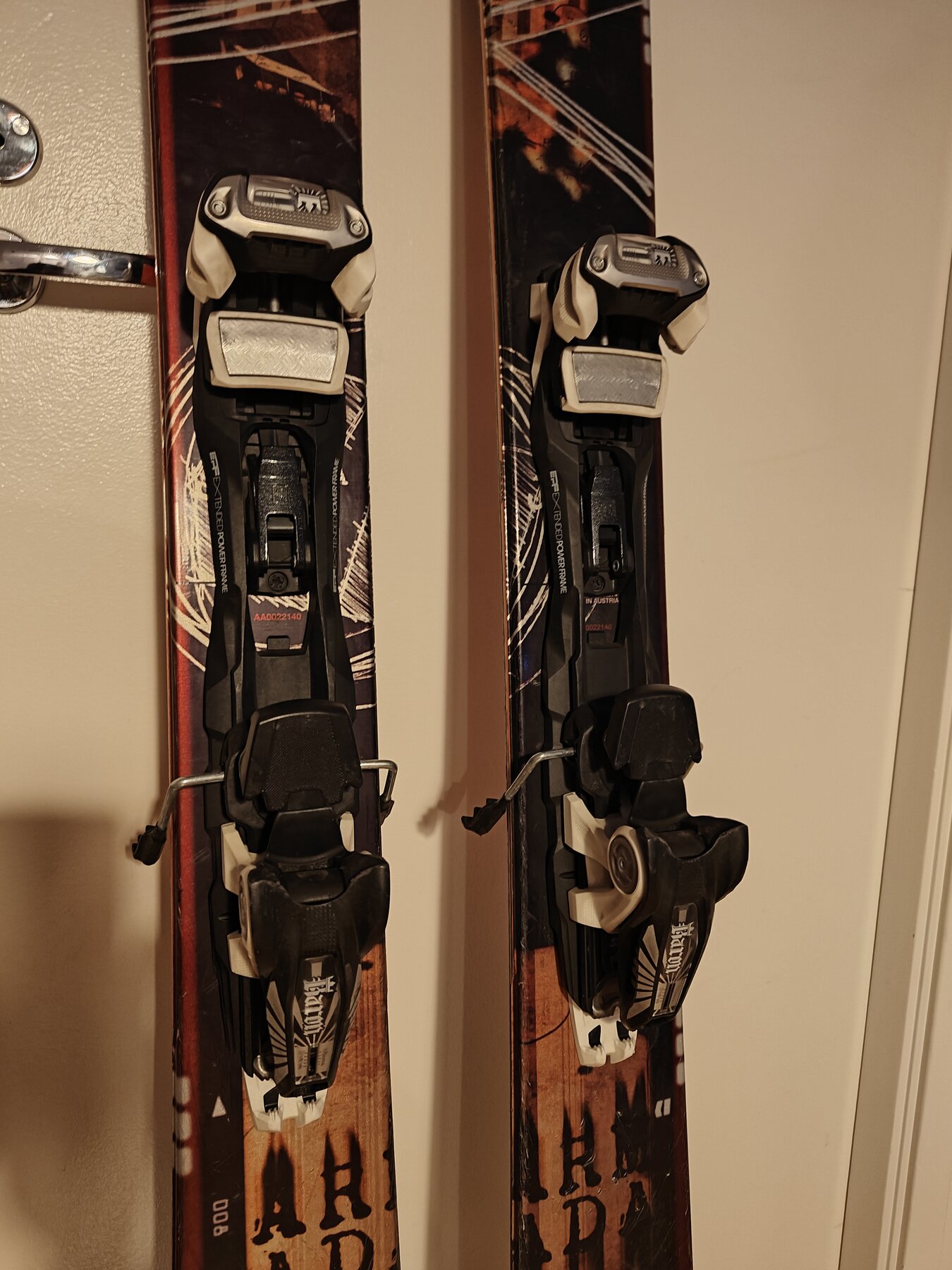 Skidorna har ett par år på nacken, bindningarna desto nyare, allt är i bra skick , inga större skador undertill,