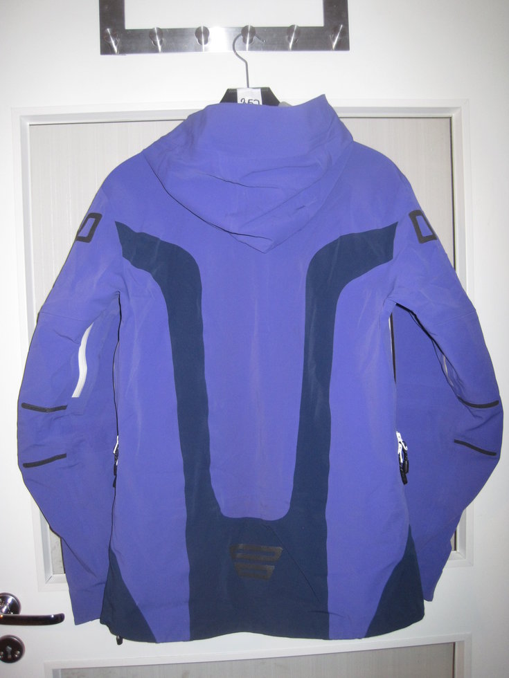 Jackan är välanvänd men i mycket bra skick. Alla dragkedjor och nätfickor är hela och fungerar som när dom var nya. Snölåset(runt midjan) och ventilation under armarna (utan nät) fungerar felfritt. Kardborrbanden har mycket fäste kvar att ge. Luva som passar över hjälm.