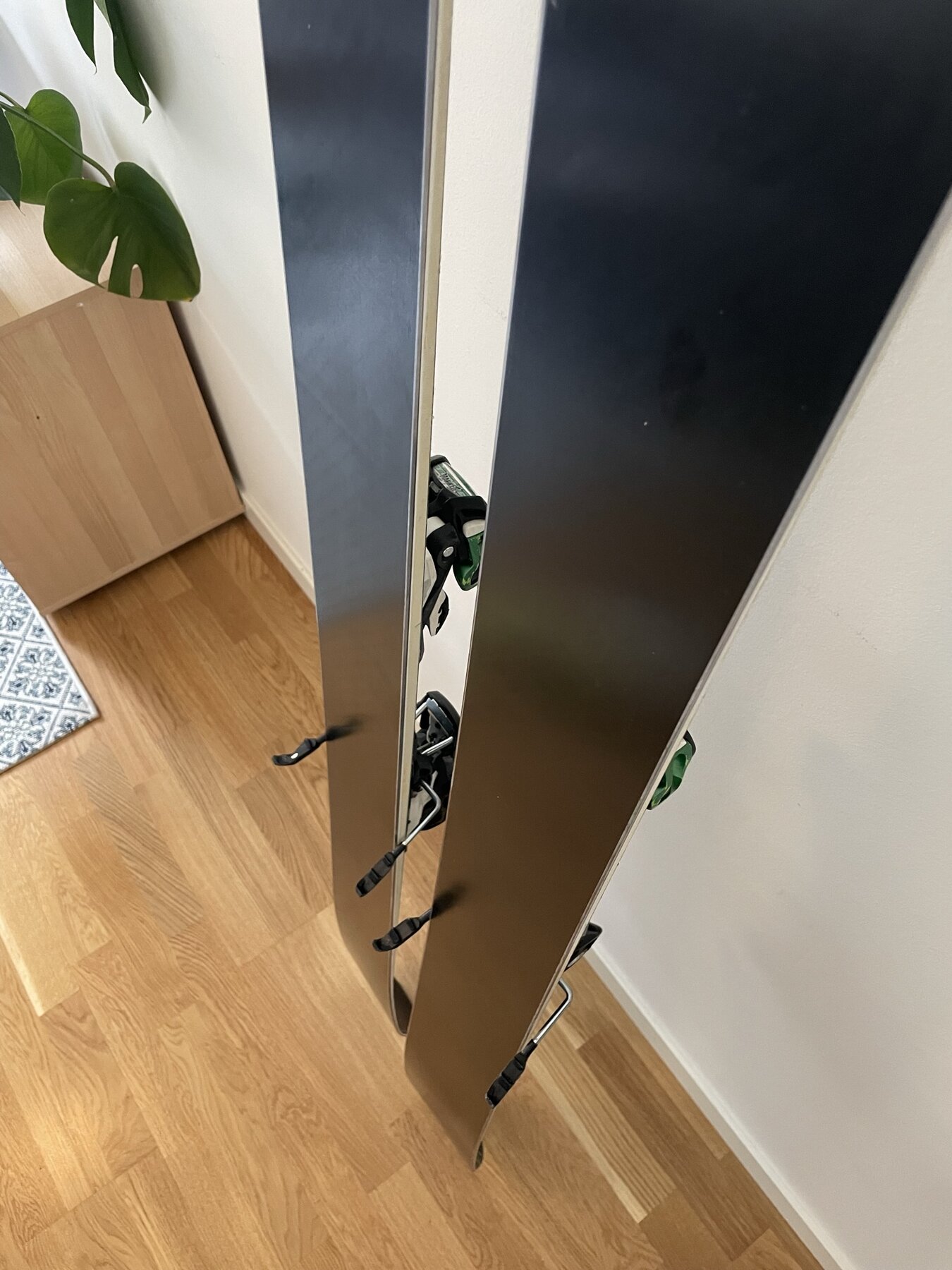 Både skidor och bindningar är såklart ”naggade” på på ovansidan, men inget som påverkar funktionen.
