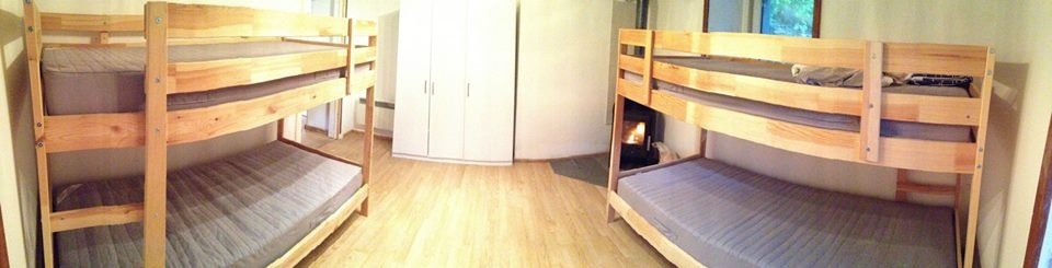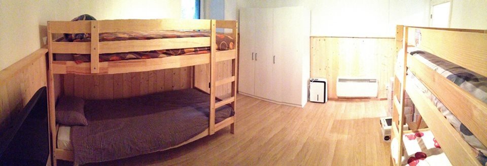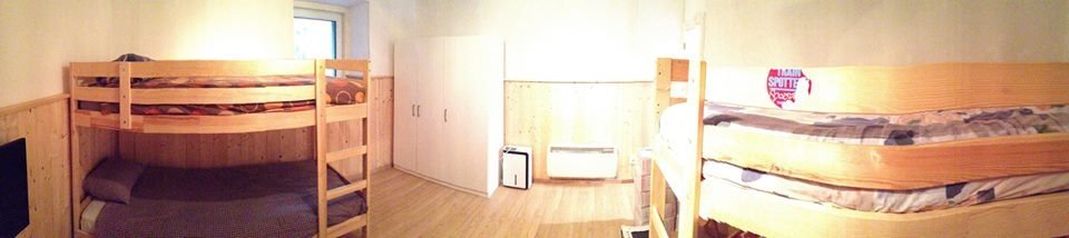 Lägenheten som ligger på första våningen är 45m2 och något mindre än den på andra våningen som är 65m2. På andra våningen finns det även ett vardagsrum med soffor och plats för sociala tillställningar som förfester. Vi har därför bestämt att det blir först till kvarn för plats i den större lägenheten. Men om man är snäll kan man säkert bli inbjuden till andra våningen vid speciella tillfällen!
