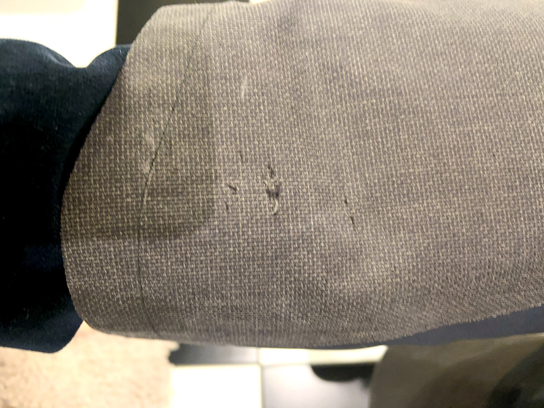 Grön jacka i nyskick. Byxan små märken av stålkant.