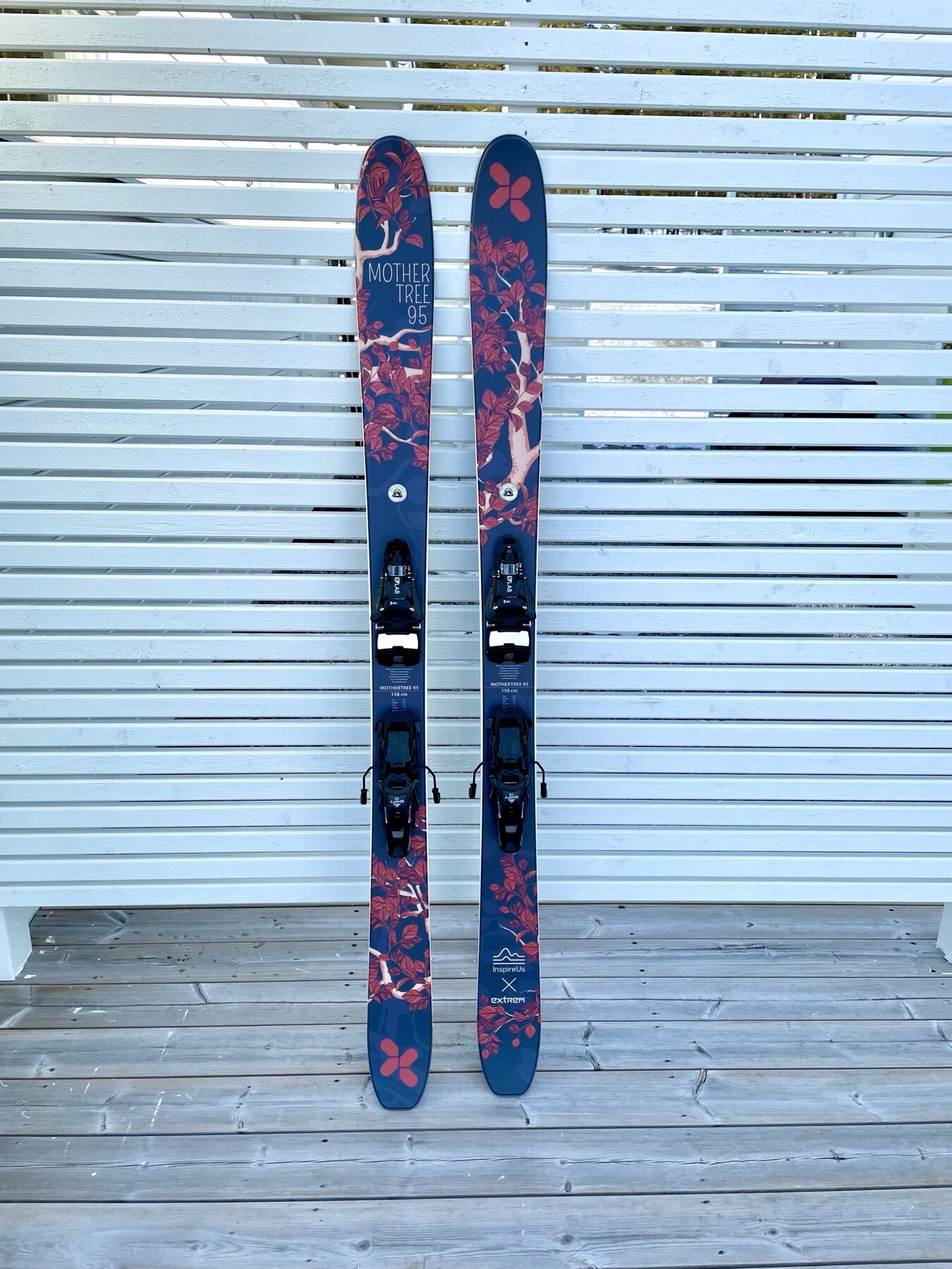 6 000:- Säljes: Extrem Mothertree 95 158 cm inkl Salomon shift-bindning och Pomoca skins