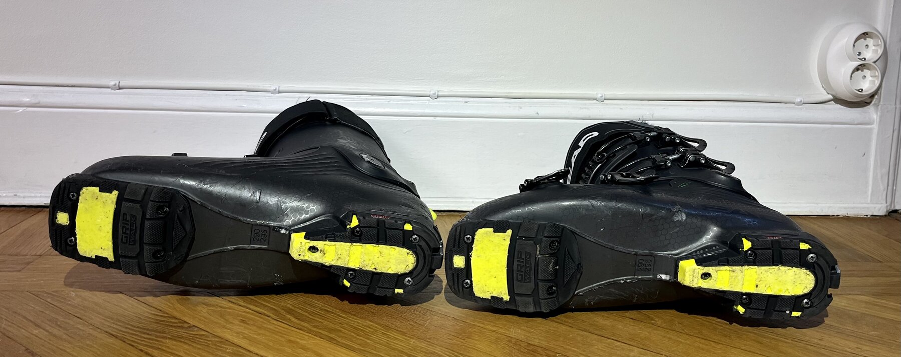 De är köpta för tre år sedan på Alpingaraget och de har tryckt dem 5-10 mm i tån för att de skulle passa mina långa och smala fötter. Så de är aningen mer utrymme för tån än en standard 29,5. Tyvärr blev de aldrig stora nog så det är därför jag säljer dem. Förutom att de för mig är lite för små har jag älskat pjäxan och de har det varit en perfekt sko för både isig pist och vintertältning!