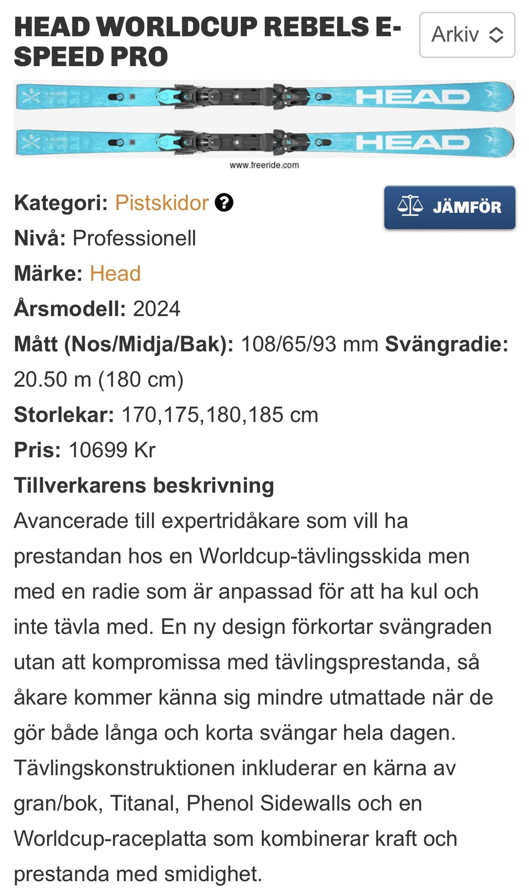 4 059:- 5 799:- Säljes: Head Worldcup Rebels e-Speed Pro (2023/24), inkl Freeflex 14 GW 23/24 bindning