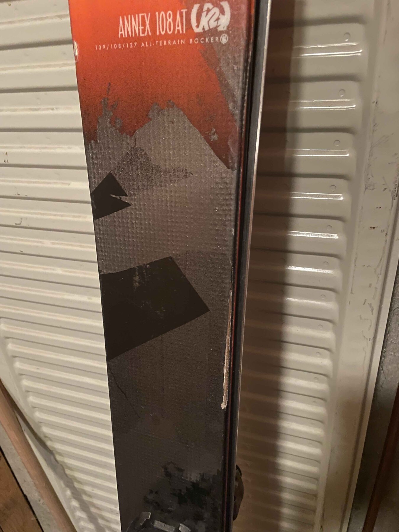 Belagen är i bra skick, en av skidorna har fått en kosmetisk smäll (se bild) och en slipning hade nog inte suttit fel, men i överlag är skidorna i bra skick. Inköpta på Sport Conrad hösten 2015.
