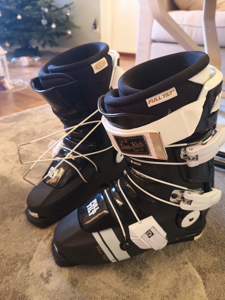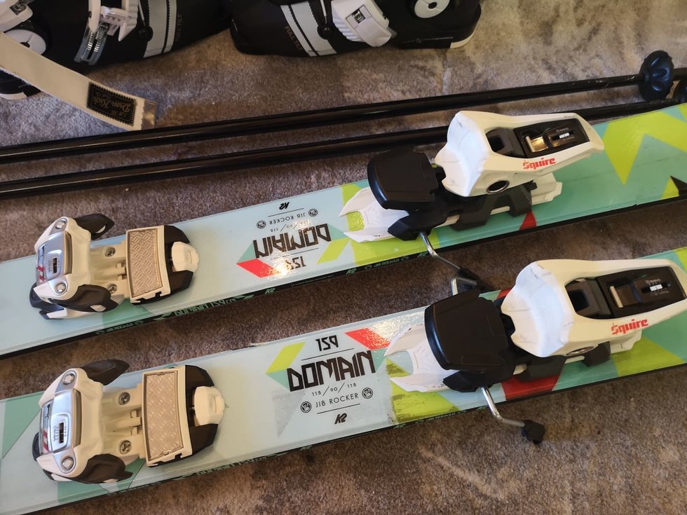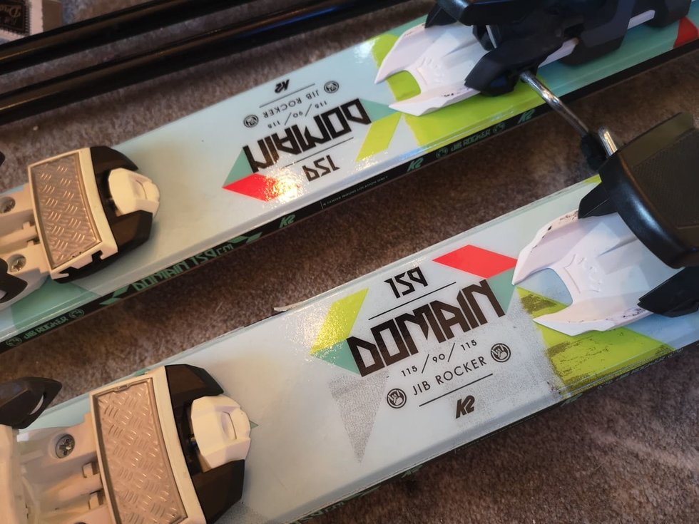 Det är ett par K2 Domain inköpta 2017. På skidorna sitter det Marker Squire bindningar. Medföljer pjäxor av Full Tilt i storlek 26,5cm (EU 41) som är använda endast en dag i Branäs. Pjäxorna är inköpta 2018 men är av årsmodell 2014.