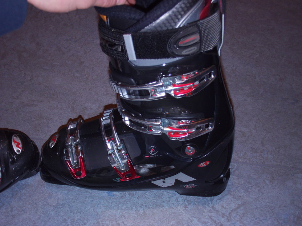 man kan ställa in om man vill ha soft eller hard flex, mjukt eller hårt flex" , lite färg släpp, men inget man bryr sig om, nått slags halt matrial som gör så att man glider ned i pjäxan lättare. priset är prutbart, (lite silver prickar på höger pjäxan, men vet ej vart de har kommit ifrån) inte nått man märker av, och går att få bort med nått färgbort tagnings medel,