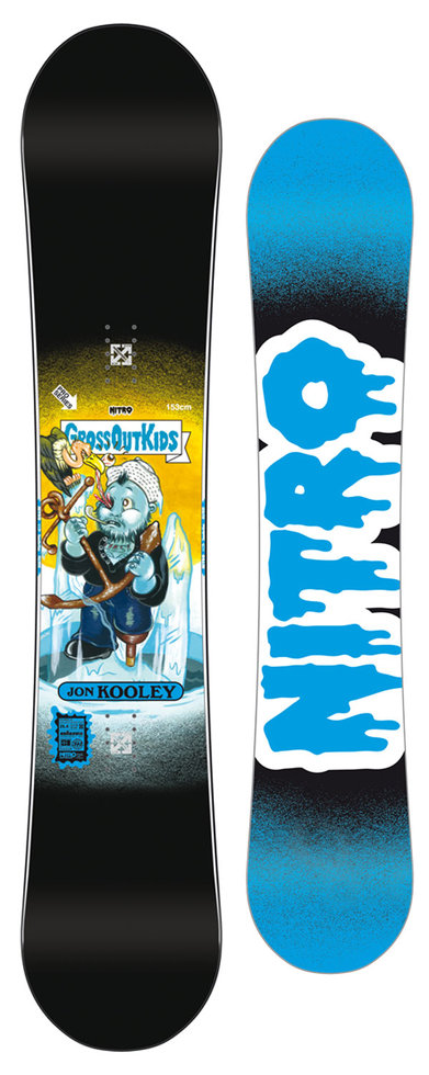 säljer en oanvänd Nitro gross out kids Jon Kooley promodell 153cm fortfarande i plastförpackningen. Det är en tvättäkta parkbräda med rocker mellan bindningarna men camber från bindningarna ut till tailen och nosen vilket gör att du har lika mycket pop som en camber bräda men är lika lätt att pressa som en vanlig rockerbräda.
