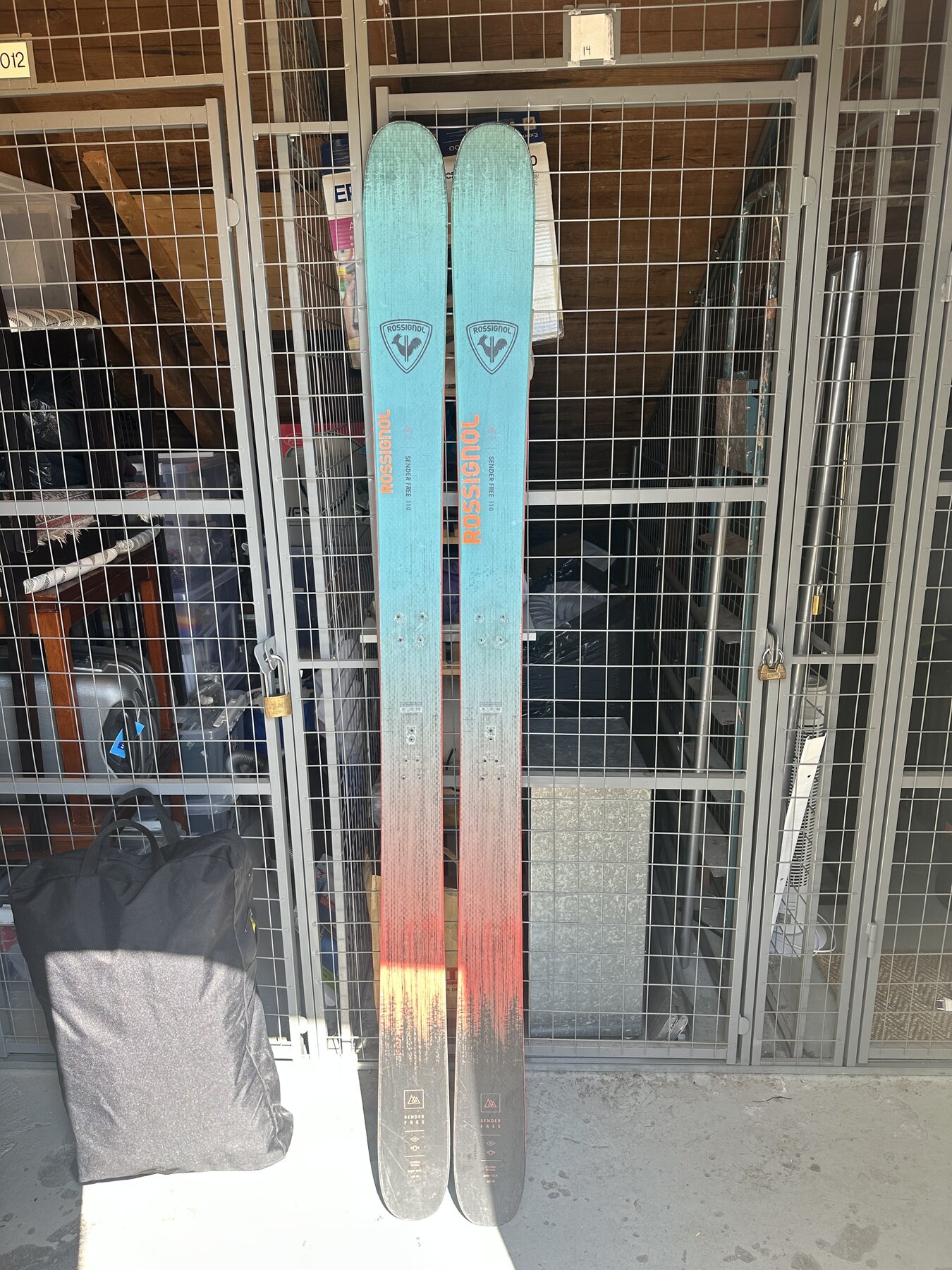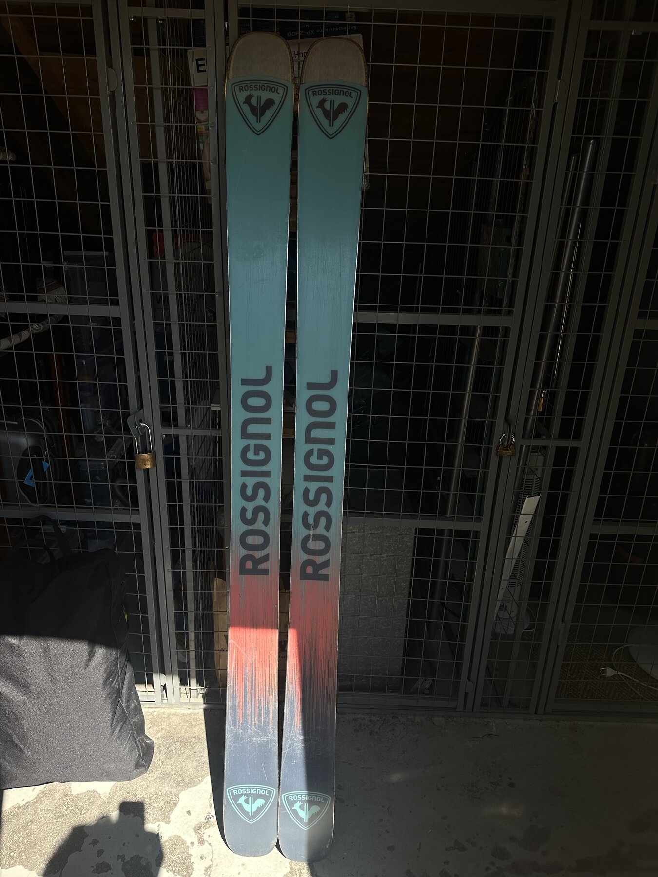 Detta par har blivit ganska misshandlat på försäsongsunderlag och fått sig ett par repor, den djupaste behöver lite nytt belag. I övrigt bra skick på skidorna, inga skador på stålkanter.