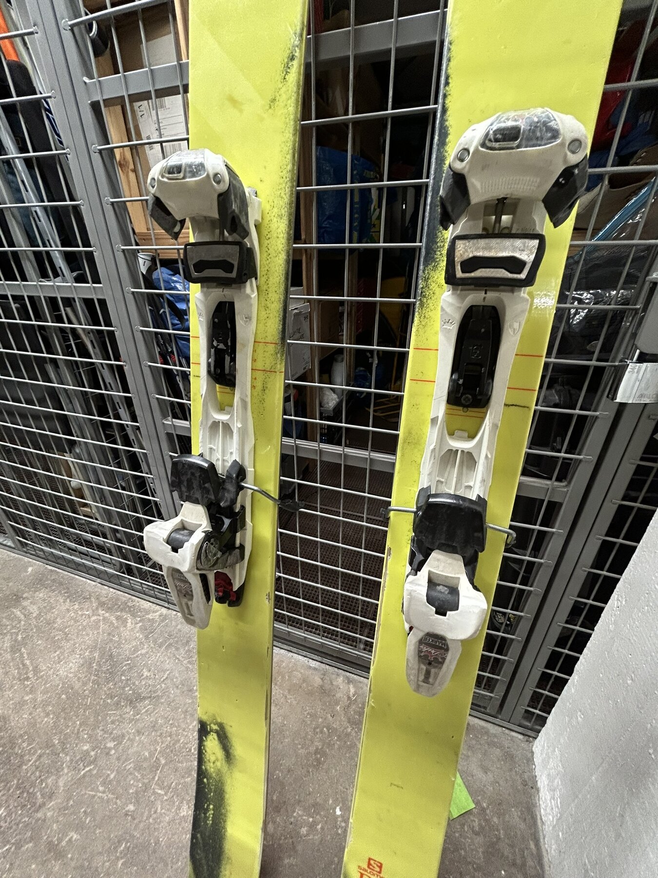 Skidorna är har gjort två säsonger och lite till. Både skidor och bindningar har betydande ytligt slitage men är fortfarande fullt funktionella. Några lagningar i belaget men jag har varit noggrann med att hålla dem i skick. Det är mycket kanter och belag kvar så de har kvar att ge. Jag tycker faktiskt att skidan i sig är fantastisk också och klarar sig väldigt bra även när det inte är puder. Om jag hade belägg för att behålla dem och tid att åka skulle jag sätta en pin-bindning på.