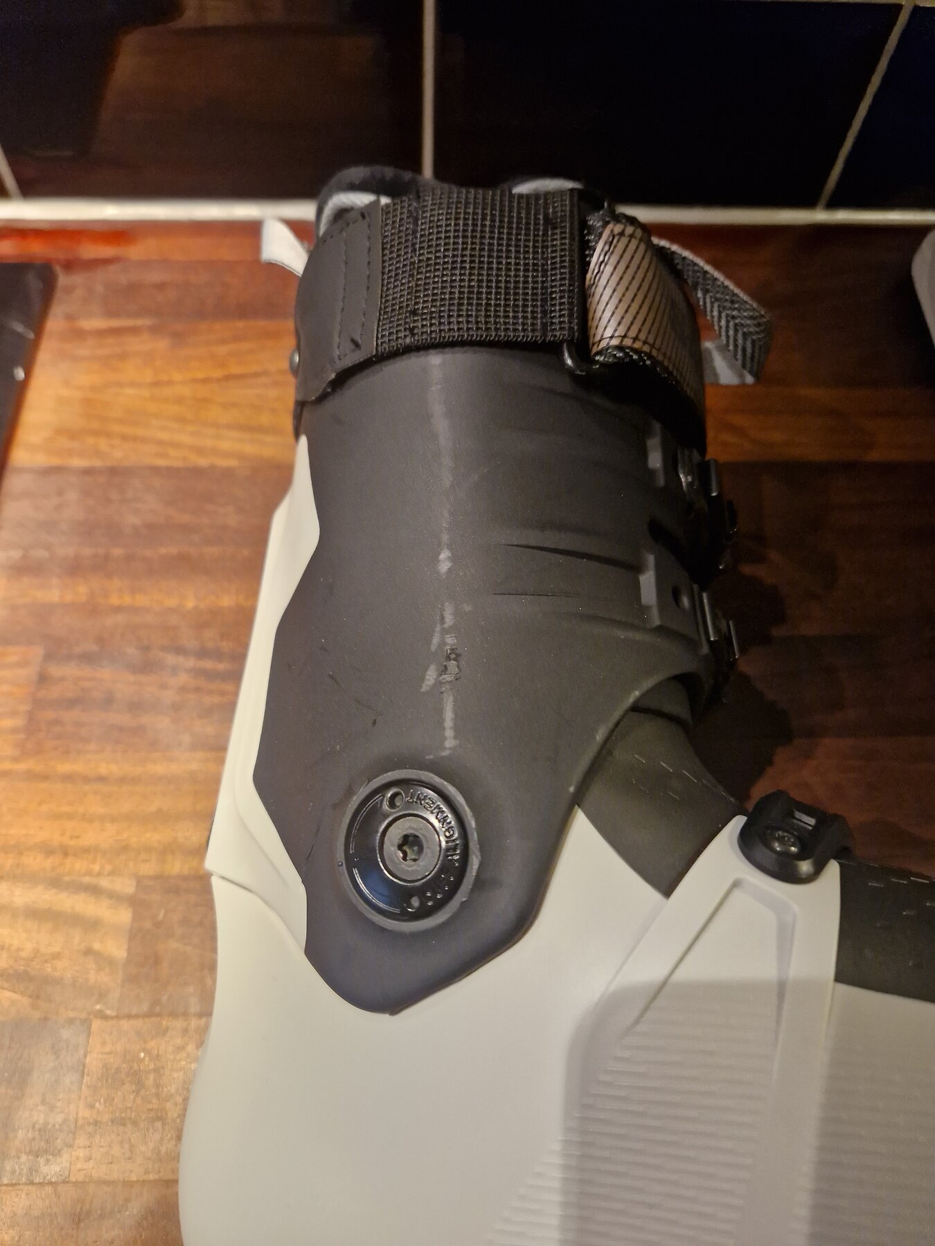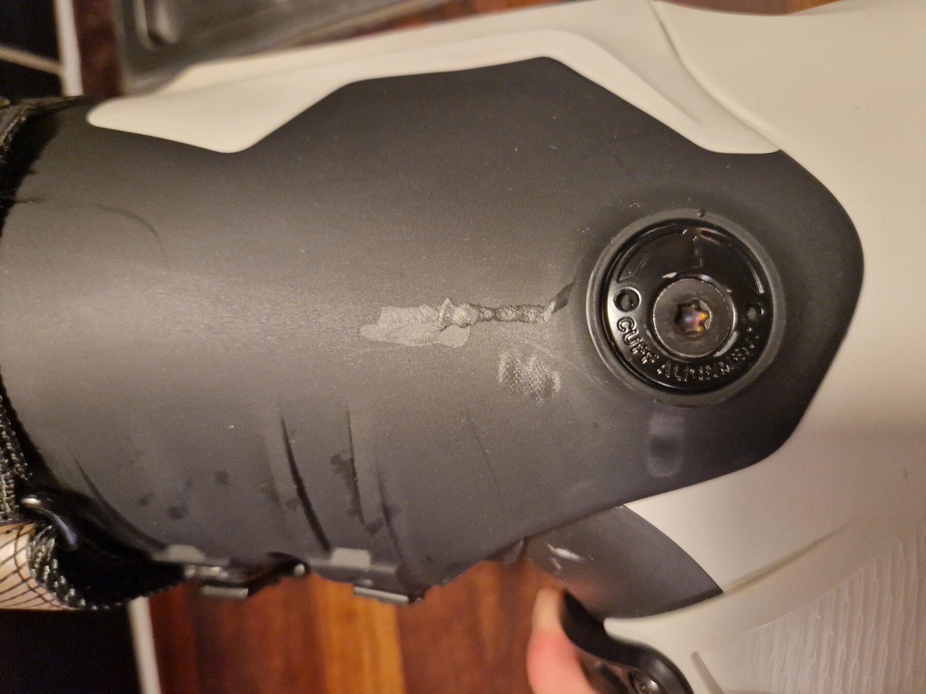 Pjäxan är endast använd ett par timmar innan olyckan var framme och jag var ett korsband fattigare. Där är alltså 2 st skavmärken som uppkom i kraschen. (Se bilder) Utöver det så är pjäxan alltså som ny.