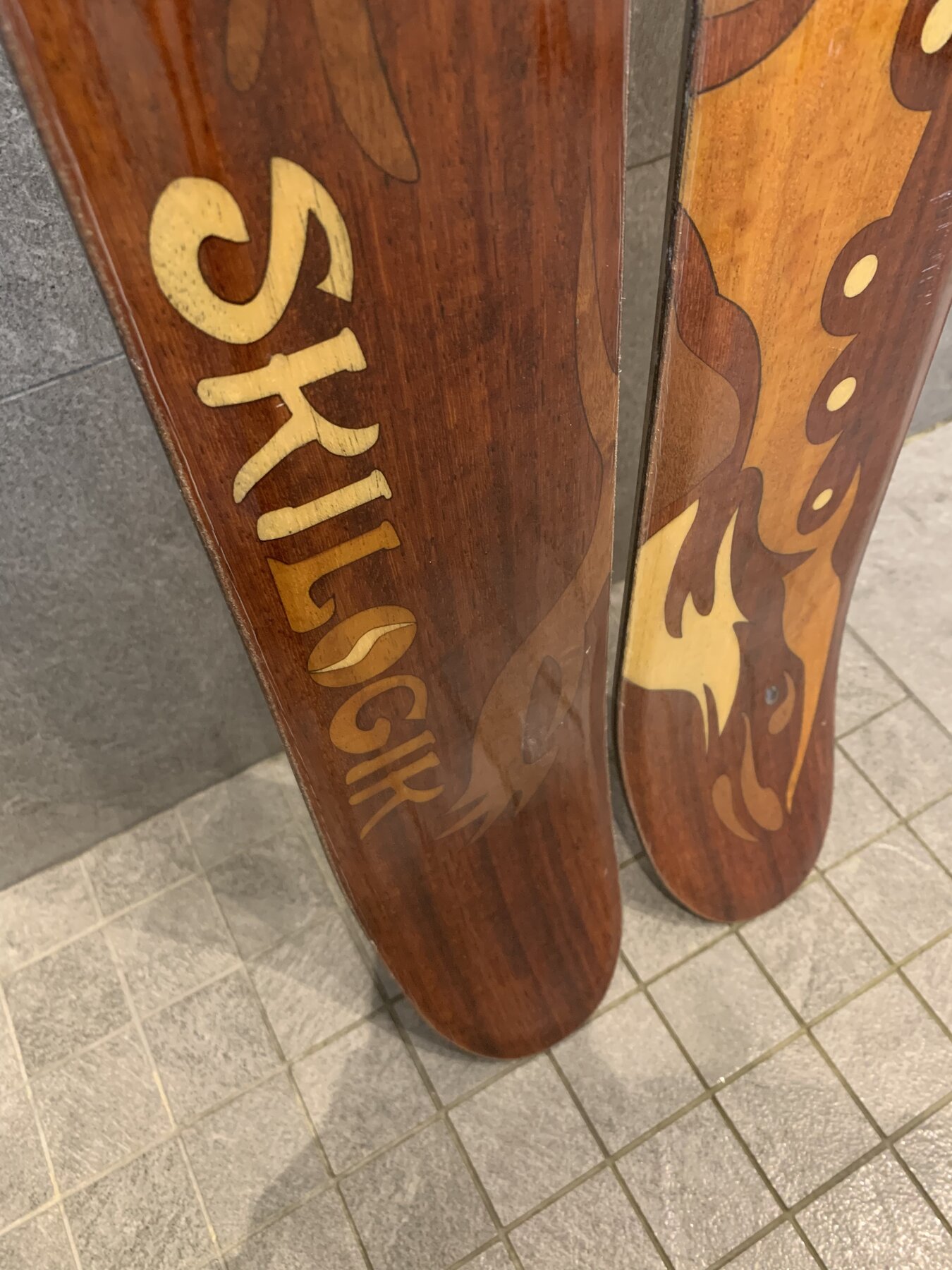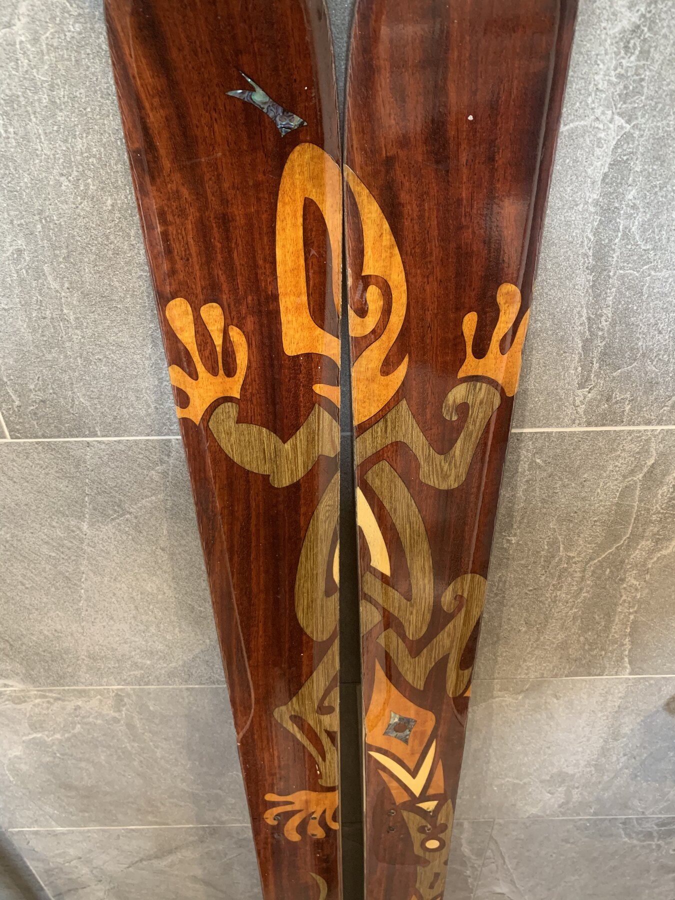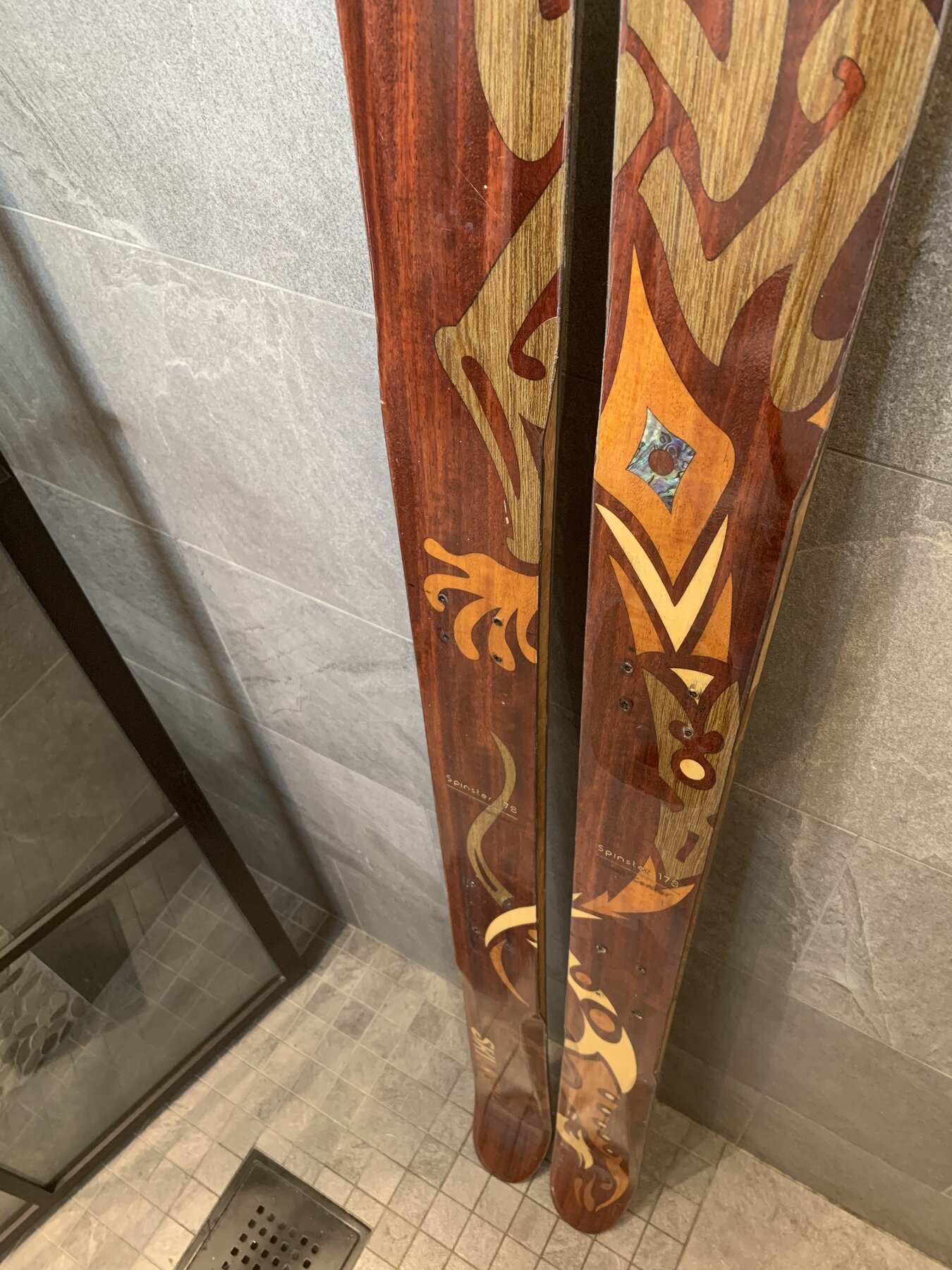 Unika, handgjorda skidor med exklusiva träslag och pärlemor i topsheet.