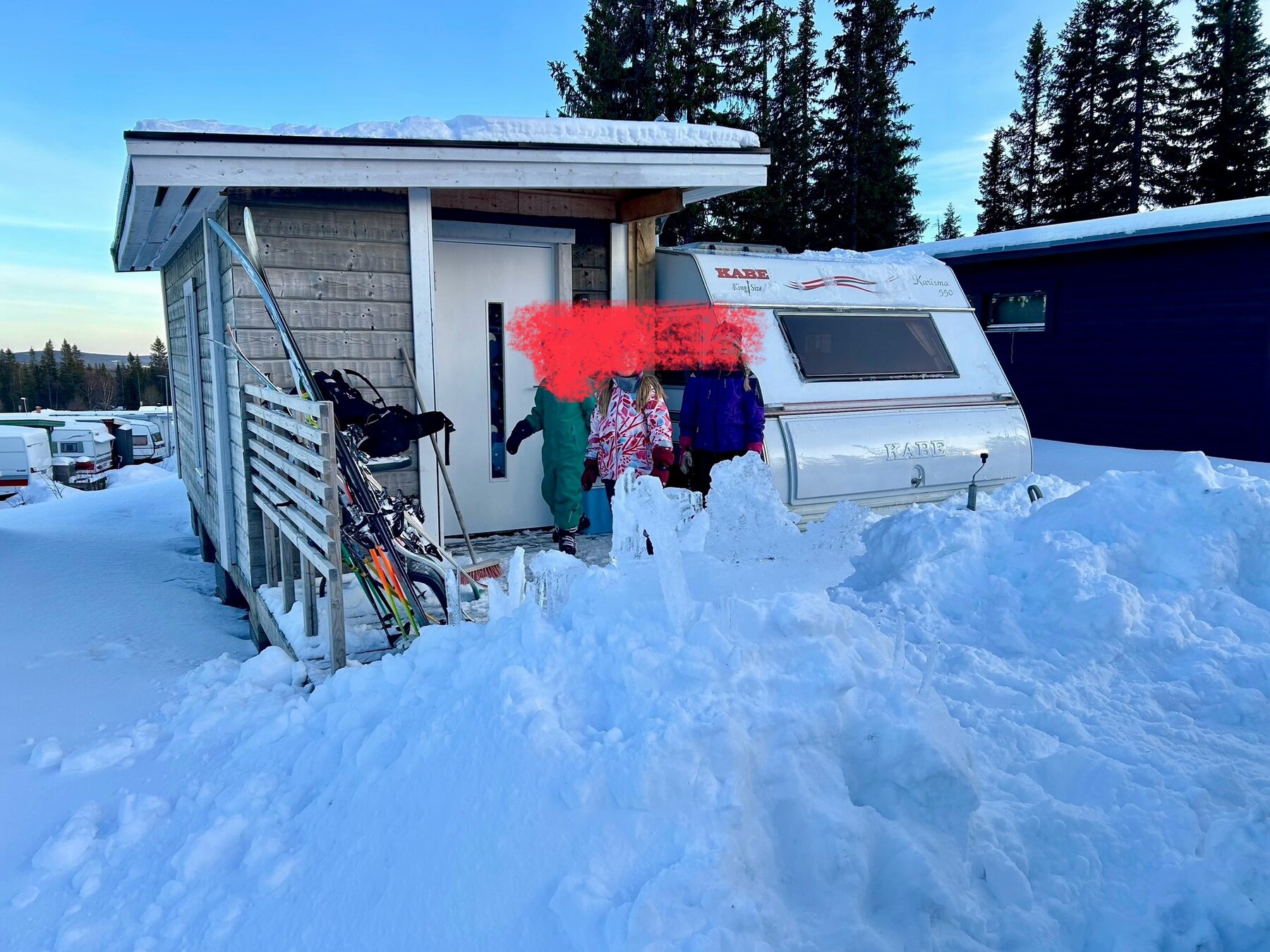 Campingen och platsen på campingen har mycket bra läge, 30 meter till skidspår och 150 meter till skidlift (transportlift). Eftermiddagssol på trallen.