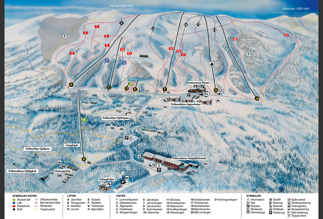 Trillevallen ligger ca 2 mil från Åre och har fin skidåkning utan liftköer och mycket fina längdspår
