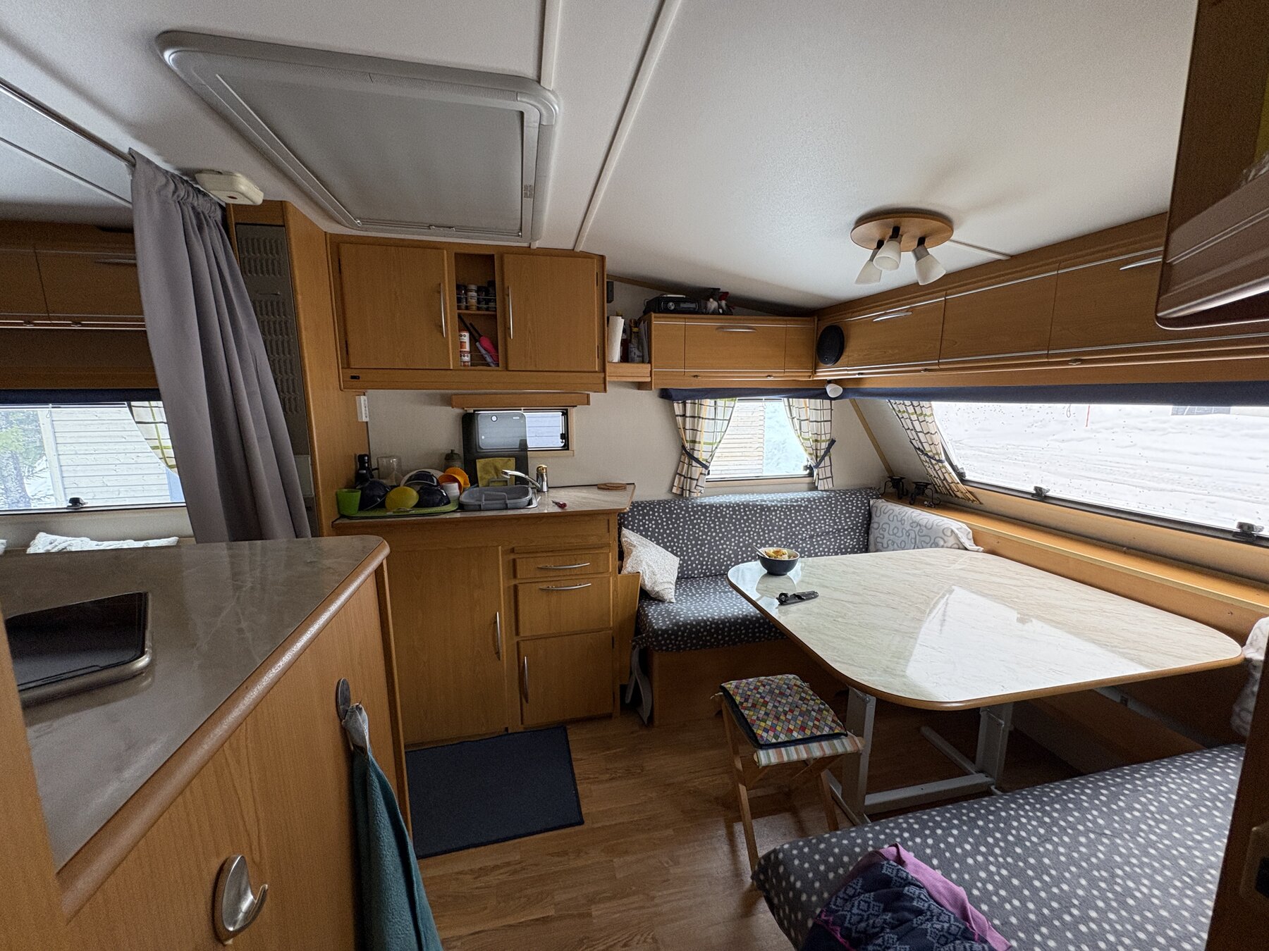 Om intresse finns kan även husvagnen eventuellt säljas, pris ca 110 000, se bilder. Kabe karisma king size 2002, reg nummer SSO724. Har 5 fast sängplatser plus nedbäddbart bord med två sängplatser till, golvvärme och bra för vintercamping.