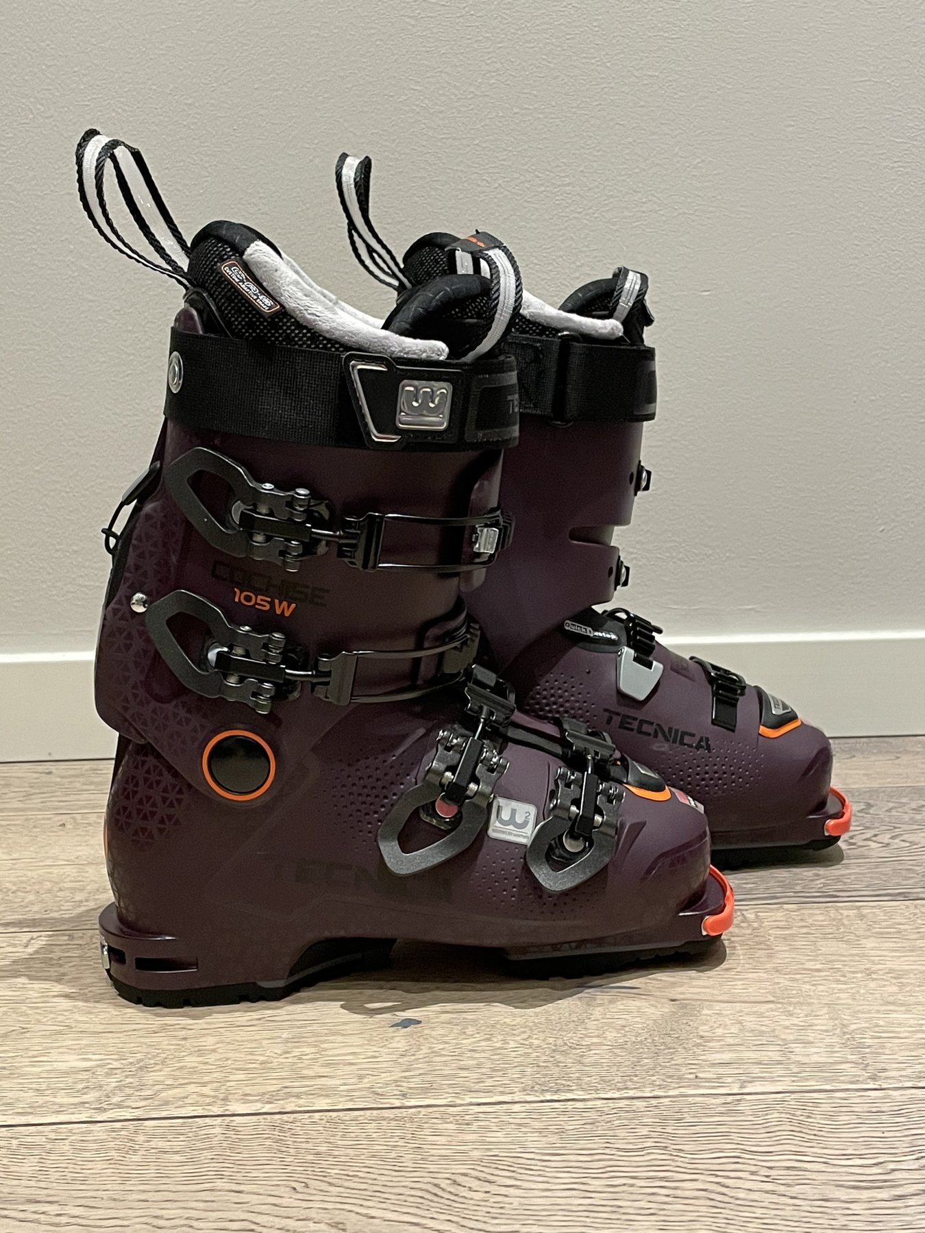 Tecnica Cochise 105 W Dyn Gw är en högpresterande freeridepjäxa med gåläge och Dynafit Tech Inserts för damer, som designats med input från Tecnicas globala initiativ Women to Women. Både det lätta och starka skalet och den bekväma innerskon är anatomiskt formade och anpassade för damer för en bra passform direkt ur förpackningen, men de tillverkas även med den formbara C.A.S.-teknologin för möjligheten till ännu bättre passform och komfort. Pjäxorna erbjuder 42º rörlighet i gåläget tack vare Mobility Cuffs med S.A.S-system, och gör tillsammans med de fyra spännena och en flexgradering på 105 att du får både utmärkt rörelsefrihet när du tar dig upp för berget och pålitlig prestanda nedför. Med en tåbox i merinoull kommer du dessutom ha varma tår även de kallaste av dagar.