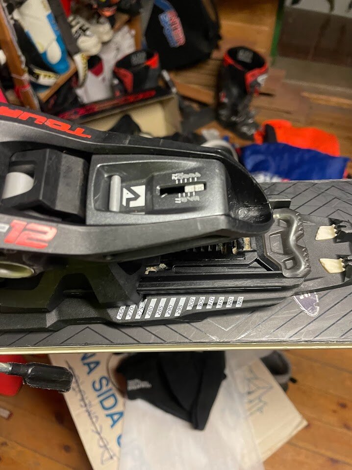 Marker F12 Tour rambindning. Storlek S (sullängd 265-325mm. hårdhet 4-12) För den som vill kunna åka runt hela berget och gå med hudar tillbaks till lift/pist. Finns tyvärr inga stighudar att sälja.