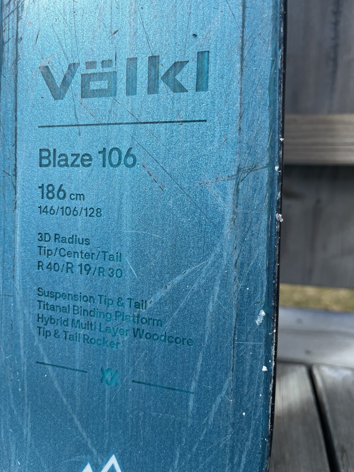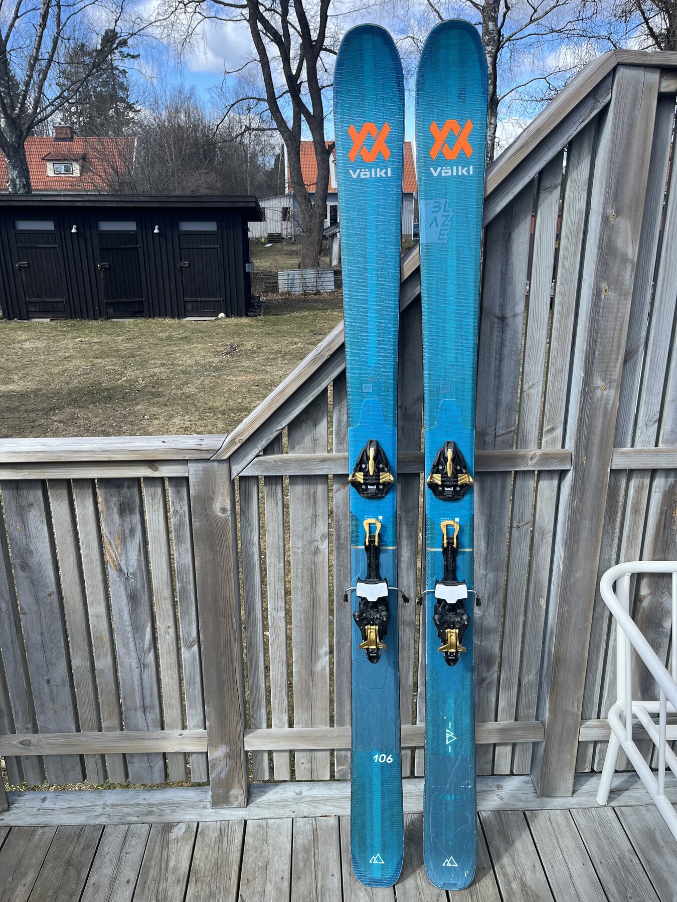 6 999:- Säljes: Völkl Blaze 106, 186cm med Kingpin 13 och hudar
