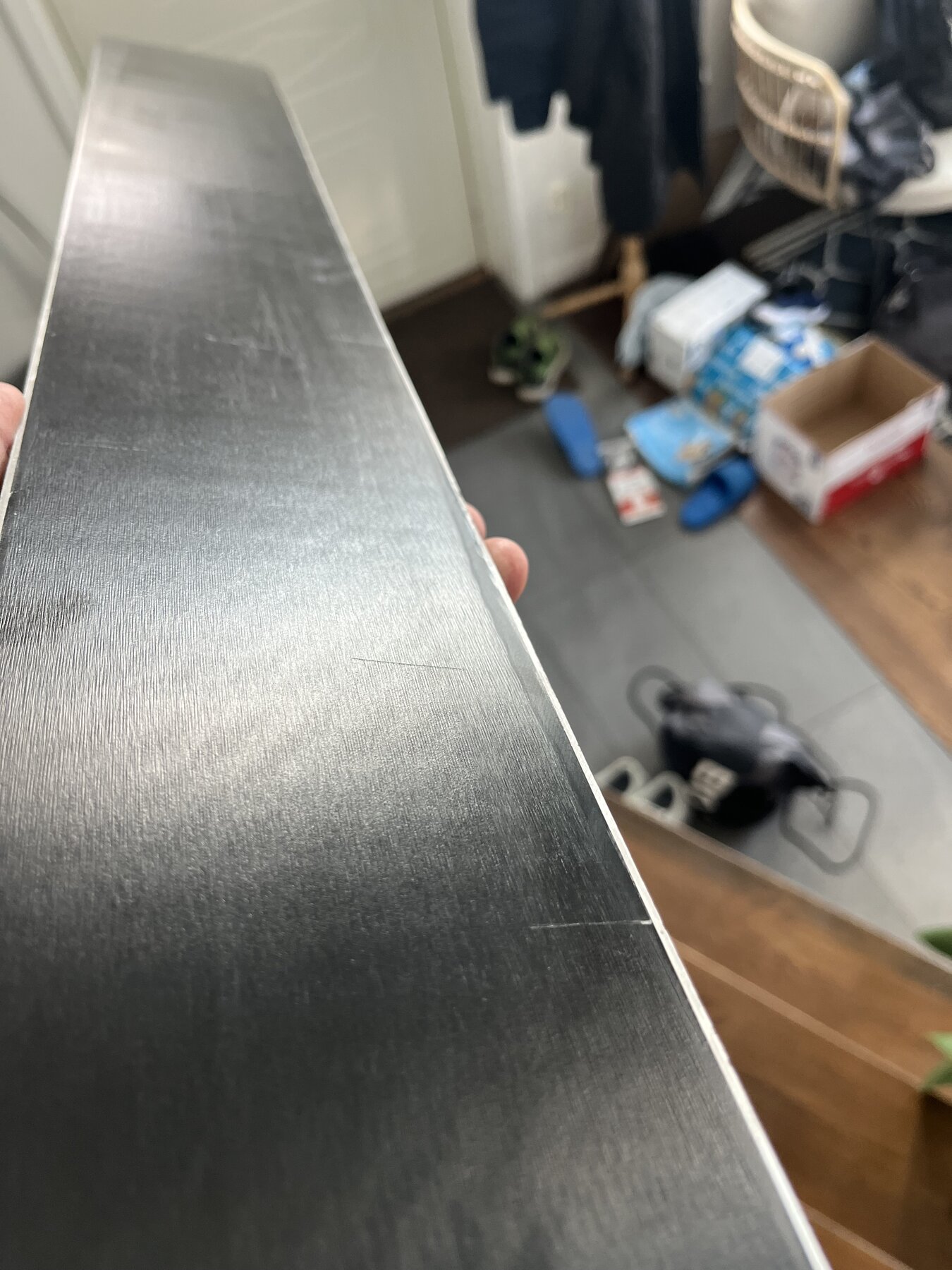 Någon repa som var lite för djup för planslipen, men ändå för grund för att vara värd att fylla i.