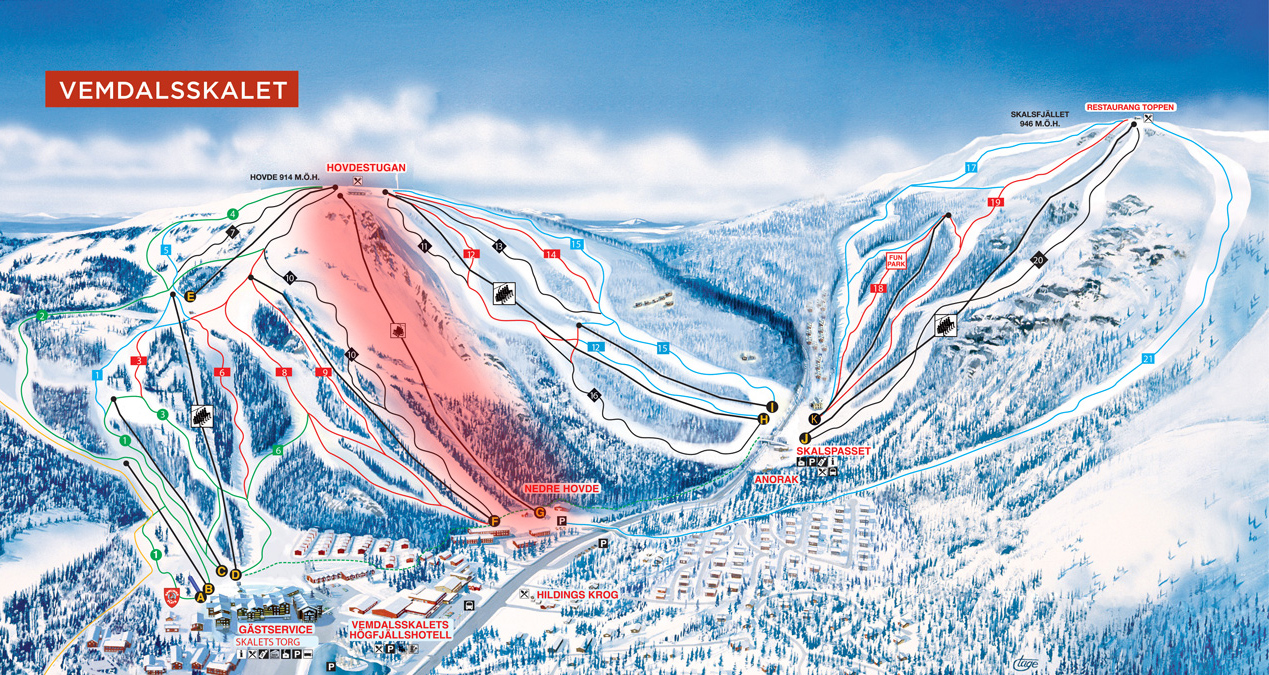 På ett årtionde har det hänt mycket i liftsystemen i Vemdalen, nya liftar har ploppat upp vart och vartannat år på bergen, vilket i sin tur har gjort att gamla liftar med lägre kapacitet förvandlats till flaskhalsar. Ett lysande exempel är den anrika Hovdebanan i Vemdalsskalet, som till kommande vinter ändrar skepnad från en långsam fyrstolslift till en snabb sexstolsdito (skribenten passar på att slänga in en kvalificerad gissning på att det även blir ett namnbyte till Hovde Express, allt i linje med övriga fortskaffningsmedel i området).