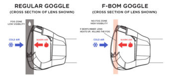 Imma på linsen har förstört fler skiddagar än Jaegermeister (kvällen innan), men nu påstår amerikanska Abominable Labs att de har lösningen på problemet och den ändamålsenliga gogglen heter F-bom. Vi med några år på nacken ställer oss omedelbart skeptiskt bredvid, efter otaliga tidigare försök att upptäcka denna skidåknings heliga graal – immfria goggles. Vi tänker med rodnad tillbaka på gogglen med den elektriska fläkten eller glasögon med hydrofobisk beläggning.