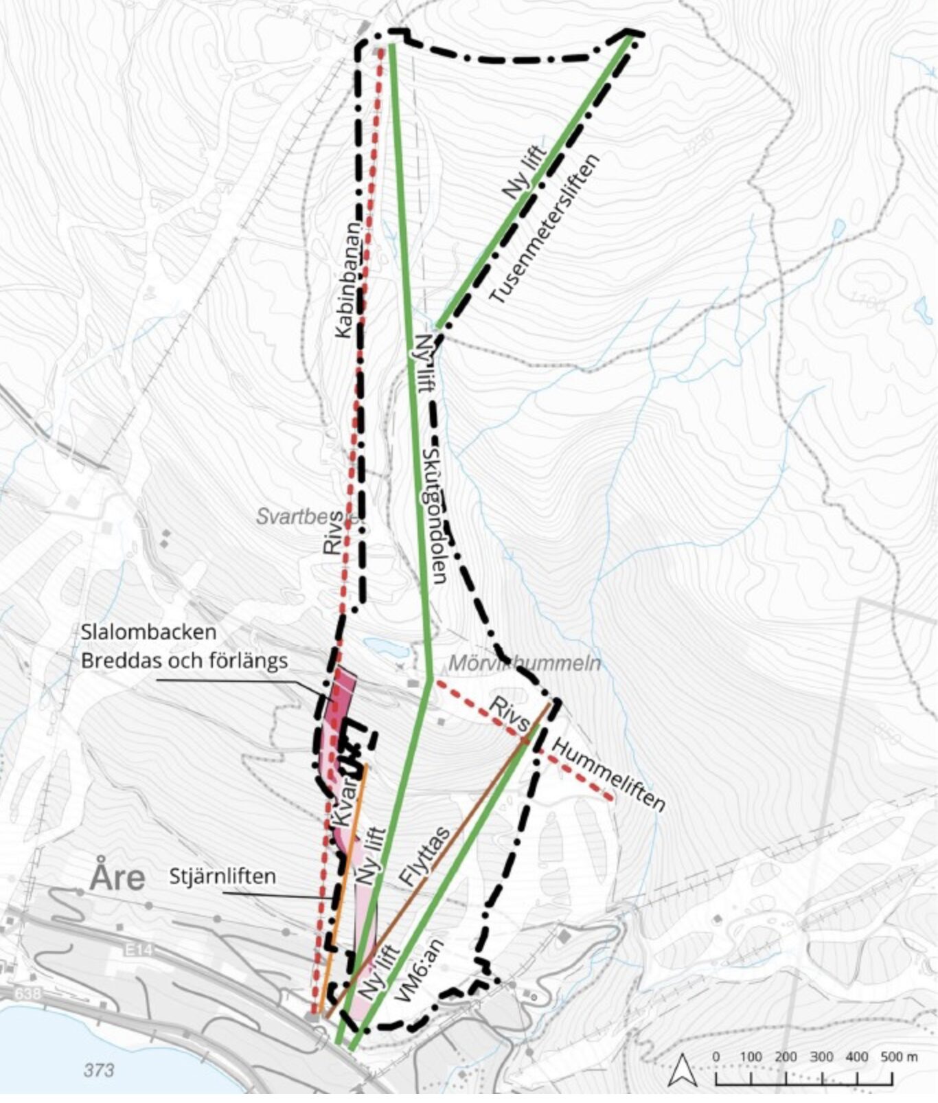 Åre kommuns detaljplan för utveckling av linbaneanläggningen syftar huvudsakligen till att ersätta Kabinbanan med Skutgondolen. Det vill säga, den nya gondolbanan i en ny sträckning, vilket Freeride tidigare rapporterat om.