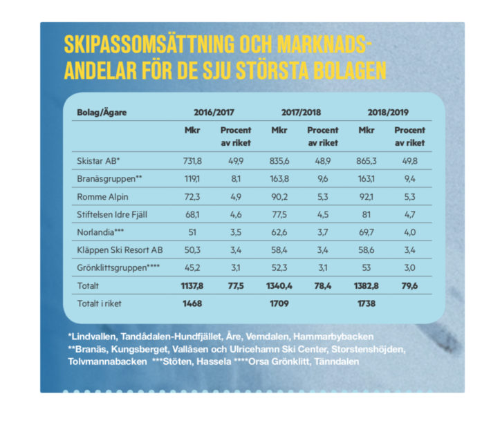 Skistar är största aktören bland skidanläggningar i Sverige och har nära halva marknaden sett till antal sålda liftkort. Romme Alpin som är tredje störst har alltså också stängt ned, något besked om att stänga från de andra större aktörerna Idre, Branäs, Kungsberget, Kläppen, Tänndalen, Orsa-Grönklitt, Riksgränsen-Björkliden mfl har inte kommit.