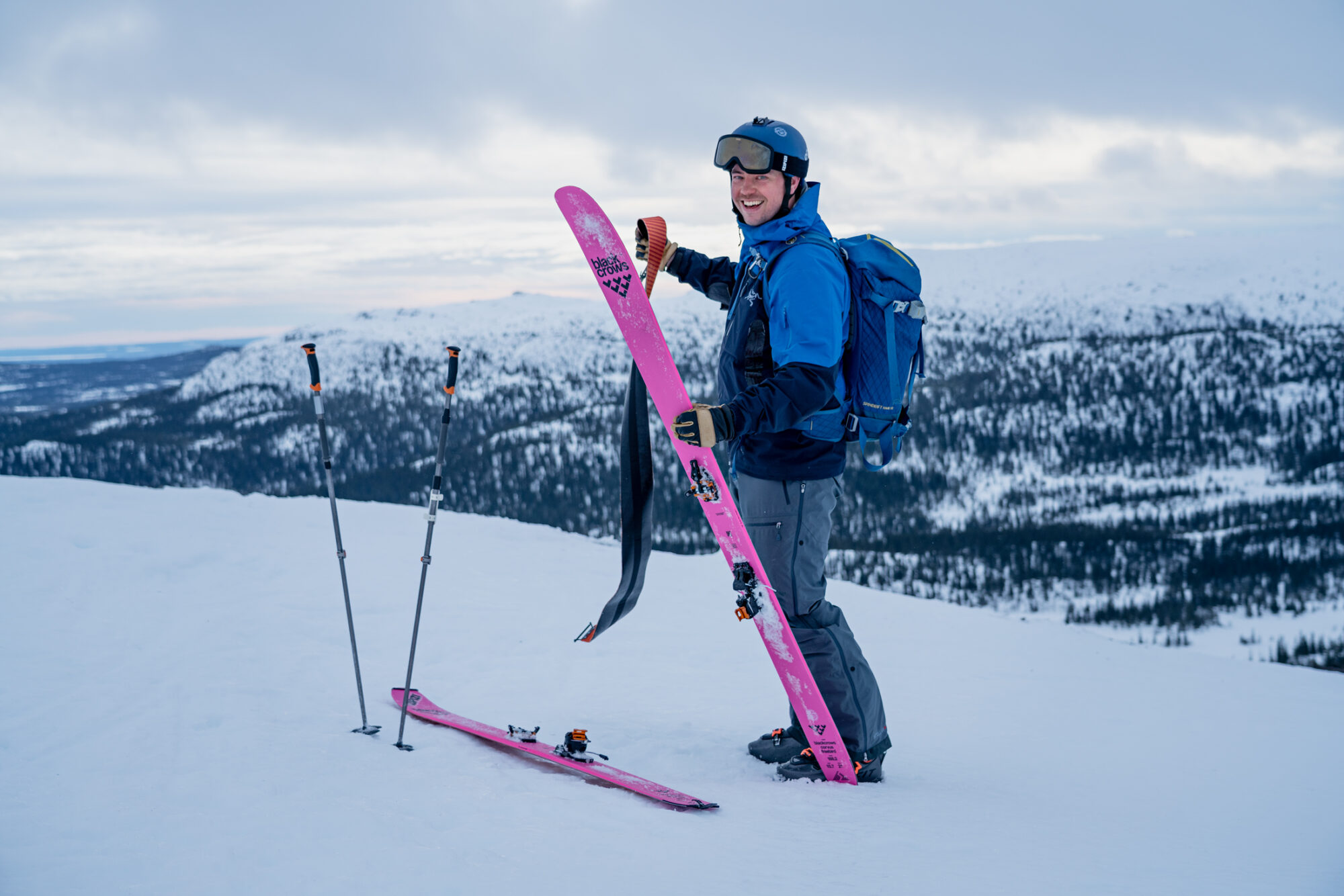 Under intervjun och våra resor ihop så har jag noterat att just detta lyser igenom hos Markus. Den där glädjen att få åka skidor nedför toppen med andra, att lägga en sväng framför kameran eller att lyckas peppa den där gnälliga fotografen med skavsår så att även denne tar sig upp på toppen. Han pratar ofta om att det borde finnas fler helger under året så han kan få göra ännu fler toppturer.