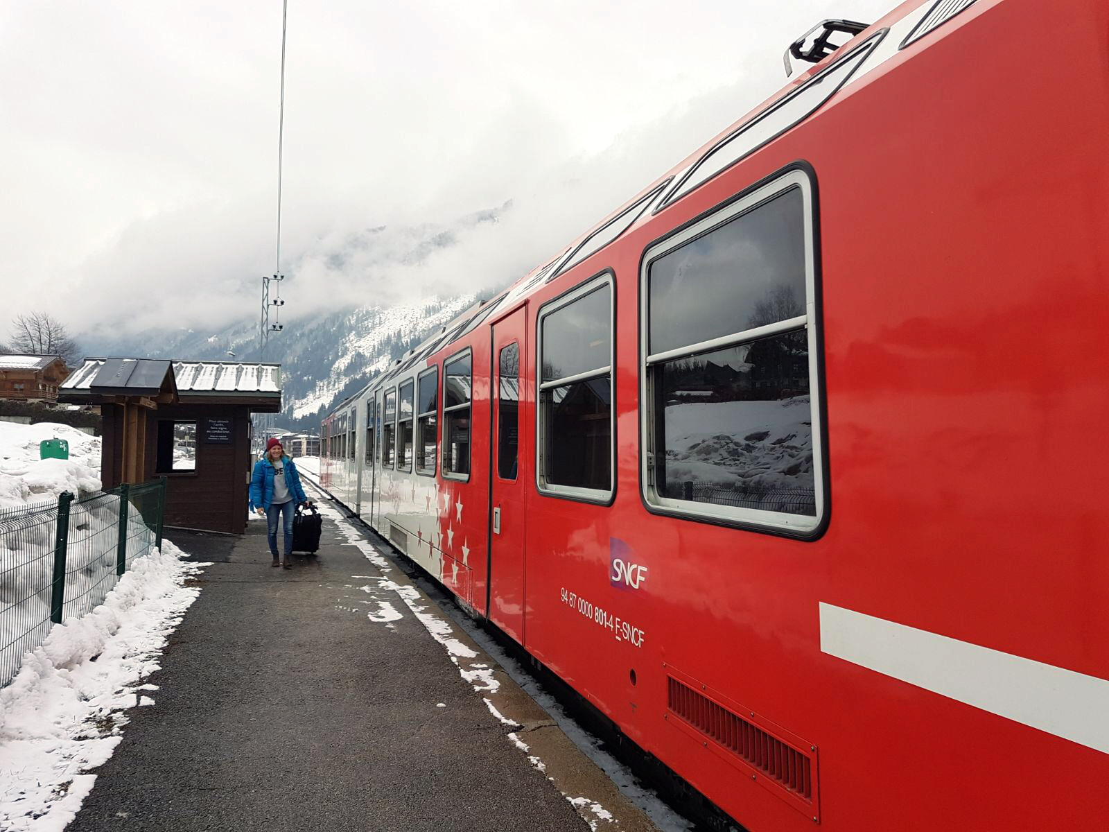 Den sjätte och sista bytet sker i Vallorcine, tacksamt då man omöjligt kan hoppa på fel tåg – det ena var det man kommer med, och det andra går till Chamonix. Här känns det lämpligt att ge lite cred till personalen på Mont Blanc Express! Supertrevliga, dessutom svarar de på utmärkt engelska när jag försöker diskutera biljettens giltighet på stapplig högstadie-franska. Den sista biten avresan har jag åkt många gånger, och känslan av att vara framme börjar infinna sig när husen man rullar förbi blir allt mer bekanta. Inte minst blir längtan efter att komma upp på berget och njuta av snön väldigt påtaglig. När jag äntligen får trycka på stoppknappen efter Aiguille du Midi-stationen och tåget saktar in vid Les Moussoux, då känner jag mig som hemma.