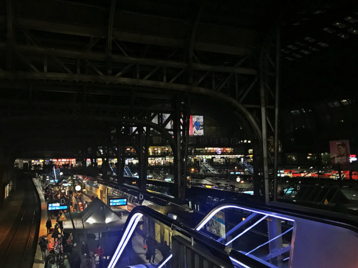 Tåget anländer till Hamburg Hauptbahnhof, denna av okänd anledning konstant svinkalla centralstation, på utsatt tid. Det är en häftig station, och enligt Wikipedia den med högst beläggning i Tyskland. 1906 invigdes den med syftet att ersätta fyra olika stationer. Över spåren är det byggt som balkonger, så att man kan stå och blicka ned på myllret av resenärer. Den där härliga känslan av att vara på väg någonstans infinner sig garanterat här, om den inte redan gjort det.
