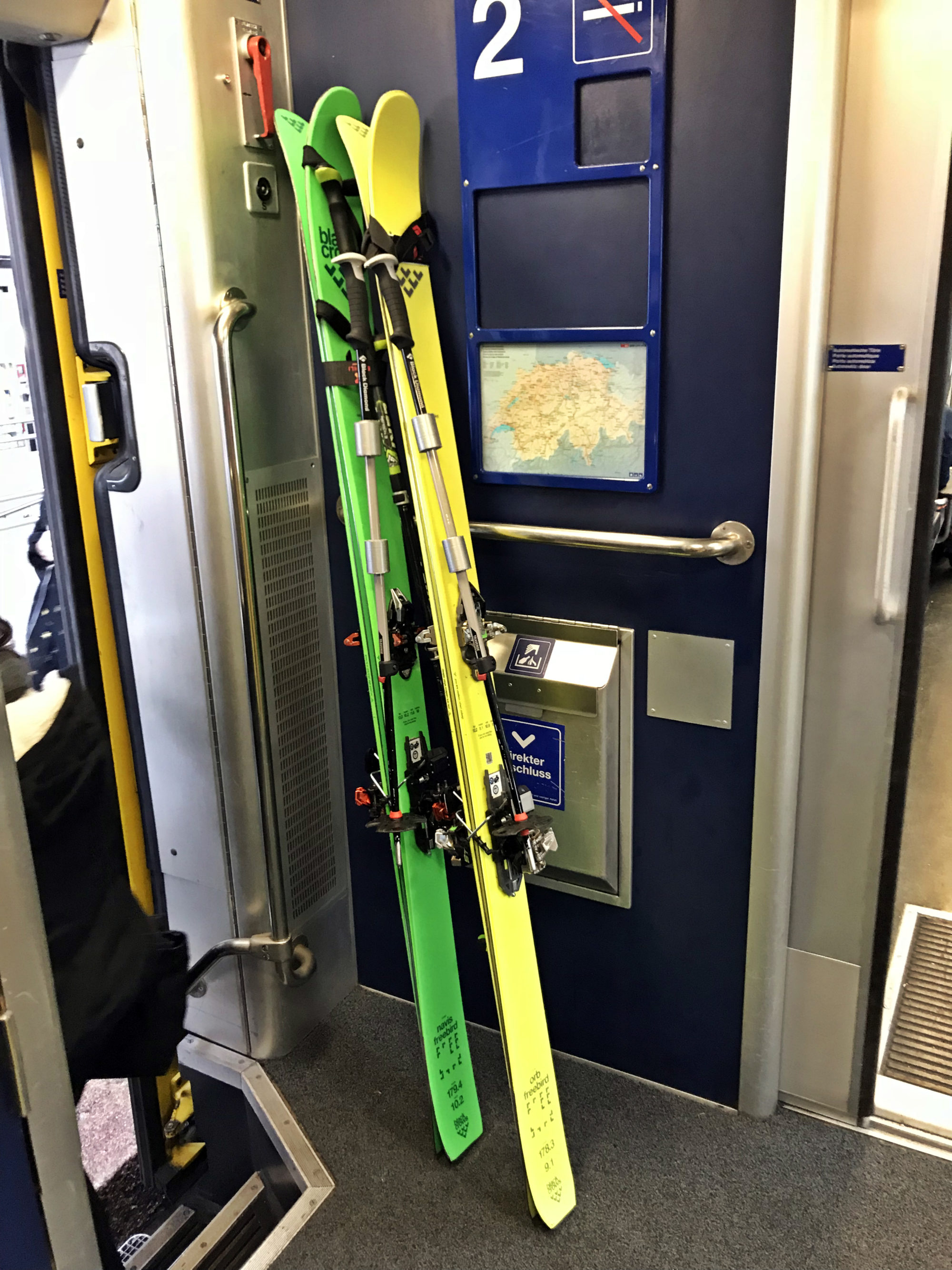 Väl framme i Basel lyckas jag med konsttycket att byta tåg på 1 minut. Min princip att aldrig springa efter kollektivtrafik till trots finner jag mig själv galopperandes i flock med några andra skidväsksläpande
