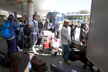 ![]() Anders är klar på Gardemoen efter en tidig uppgång och fyra koppar kaffe. Vi inväntar 22 trötta elever! Foto: Kalle Hägglund |