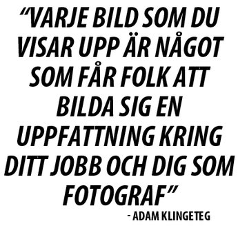 Jag heter Adam Klingeteg, är 19 år gammal och uppvuxen i Växjö i de småländska skogarna långt från snö och skidbackar. Jag har fotograferat nu i ungefär tre år, men det är nu det senaste halvåret som det har varit på en ”professionell” nivå med stora kunder och företag. Förra året drev jag ett UF-företag (Ung Företagsamhet, reds anm) men driver sedan en månad tillbaka min egen fotofirma Adam Klingeteg Photography.