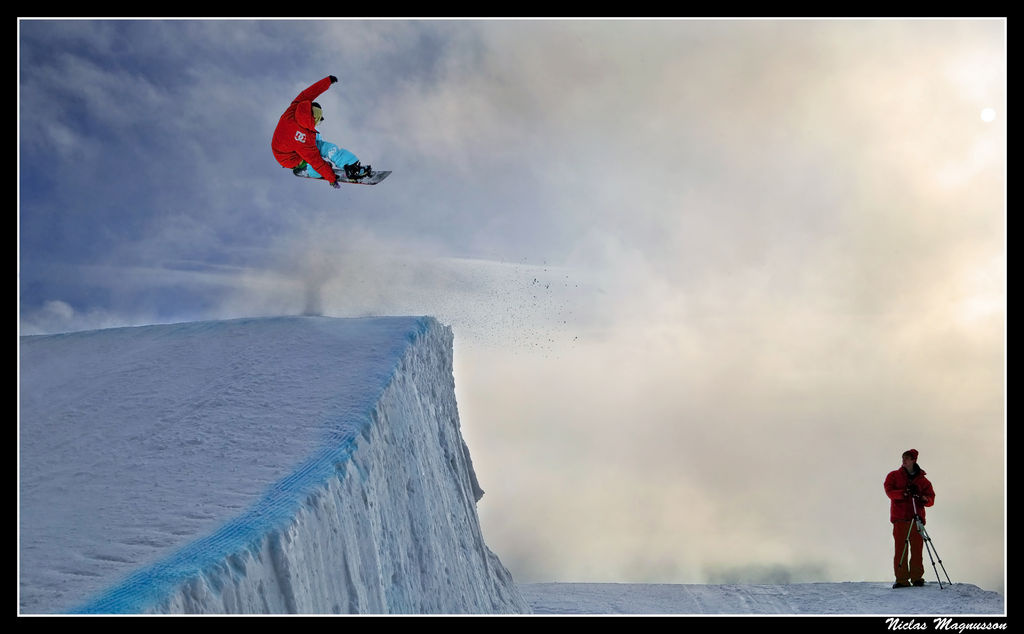 Jag tycker utan tvekan att det är timingen. Det är många tillfällen då jag ser i sökaren att åkaren ligger bra i luften, jag trycker av och ser sedan efter att åkaren inte hade graben. Samtidigt så vet man att åkaren inte hade sett bra ut i luften om man väntat in graben. Vissa åkare är ju sjukt grymma på att både få graben tidigt och hålla den länge. Och de är en fröjd att jobba med. Då slipper man förstöra en bra komposition för att man ska hamna i en vinkel där man vet att åkaren ligger bra i luften samtidigt som åkaren hunnit med att få tag i brädan/skidan.