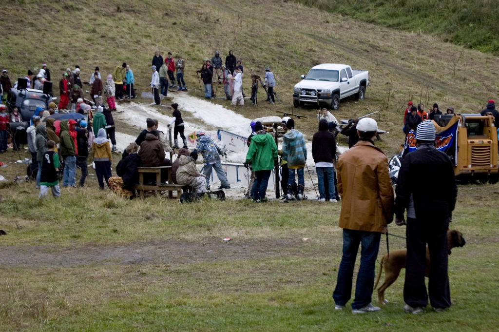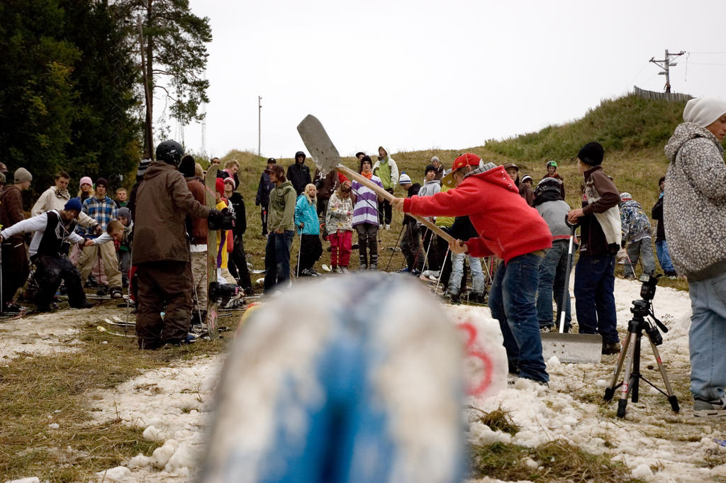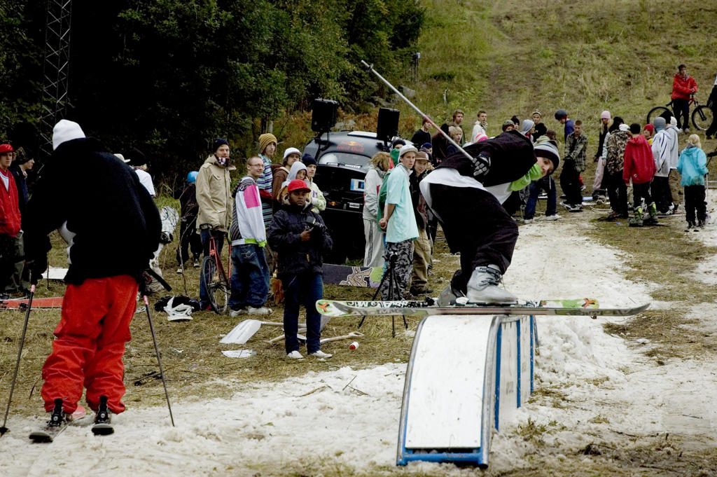 Jag är glad att jag slipper ge mig på railsen och drar med en sympatiserande rörelse min hand mot min mittenregion när jag ser ytterligare en åkare punga ett av railsen igen. Med huvudet före ner gyttjan och med kompisarna som ljuder ”aaaaaaohhhh” i kör skrattar han bara snabbt, borstar av sig och går upp igen. ”En minut kvar av tävlingen”, uppmanar speakern och de tappra åkarna beger sig uppåt en sista gång.
