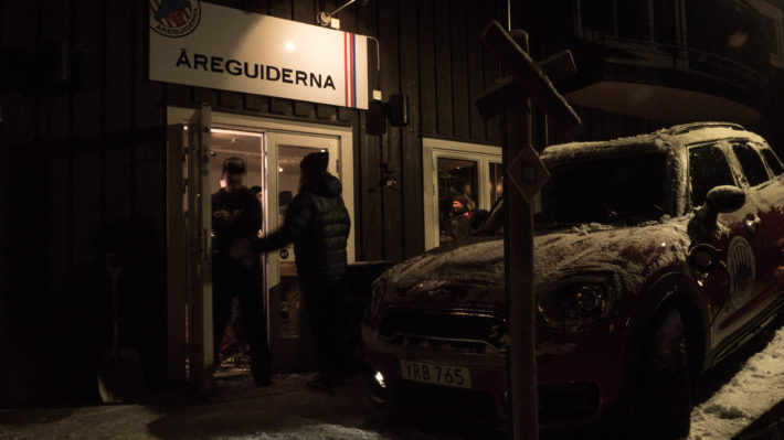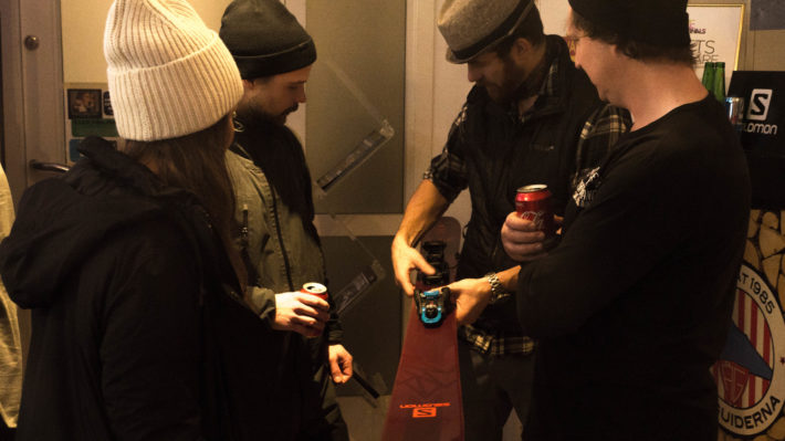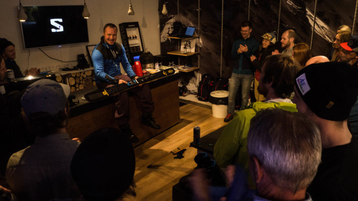 Besökarna som vallfärdat till Åreguidernas lokal på torget i Åre bjöds på glögg, tilltugg och en presentation av Salomons representant Simon Sjöberg. Det var tidig lördagskväll mitt i skidtestarhelgen och stämningen förväntasfull.