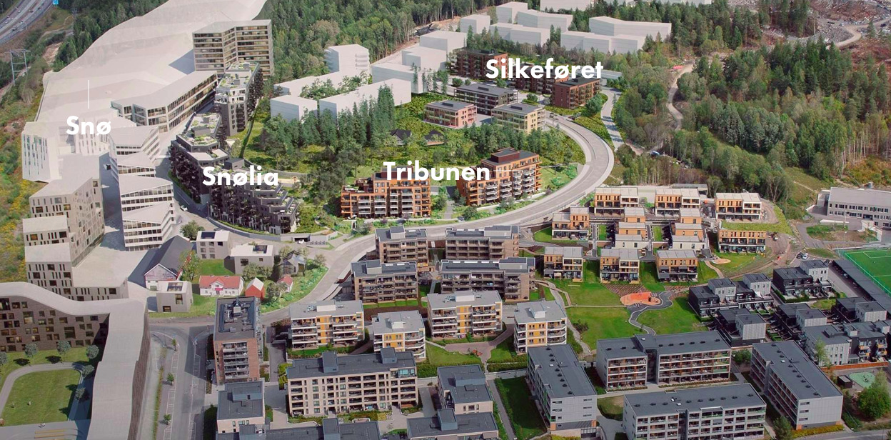 För det visar sig att i Lørenskog är det inte bara en enorm inomhusskidanläggning som är under konstruktion. Vid sidan av hallen håller dessutom en helt ny stadsdel att växa upp, med just namnet Snøporten. Alltså, här kommer snart också att finnas bostäder, butiker, hotell samt företags- och kunskapsparker.