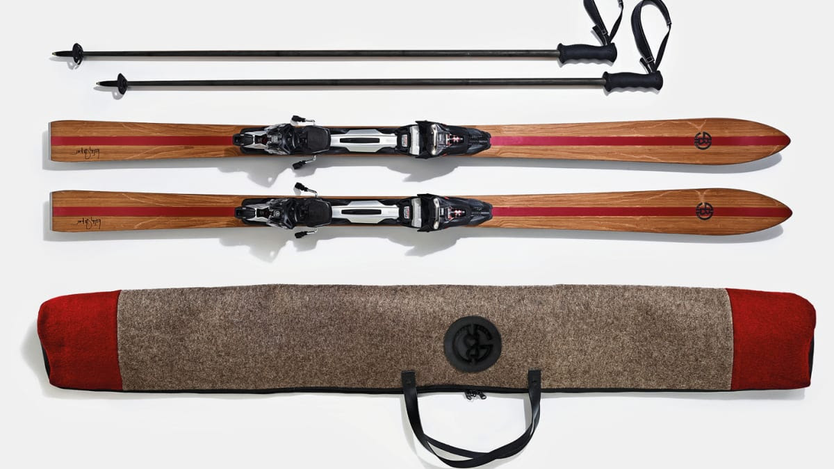 Stavarna är i kolfiber, och den luddiga skidväskan är sydd från schweiziska arméfiltar. Är man ett lyxmärke då vinnlägger man sig självklart om att jobba med storytelling deluxe i alla led: från material hela vägen fram till prislappen.