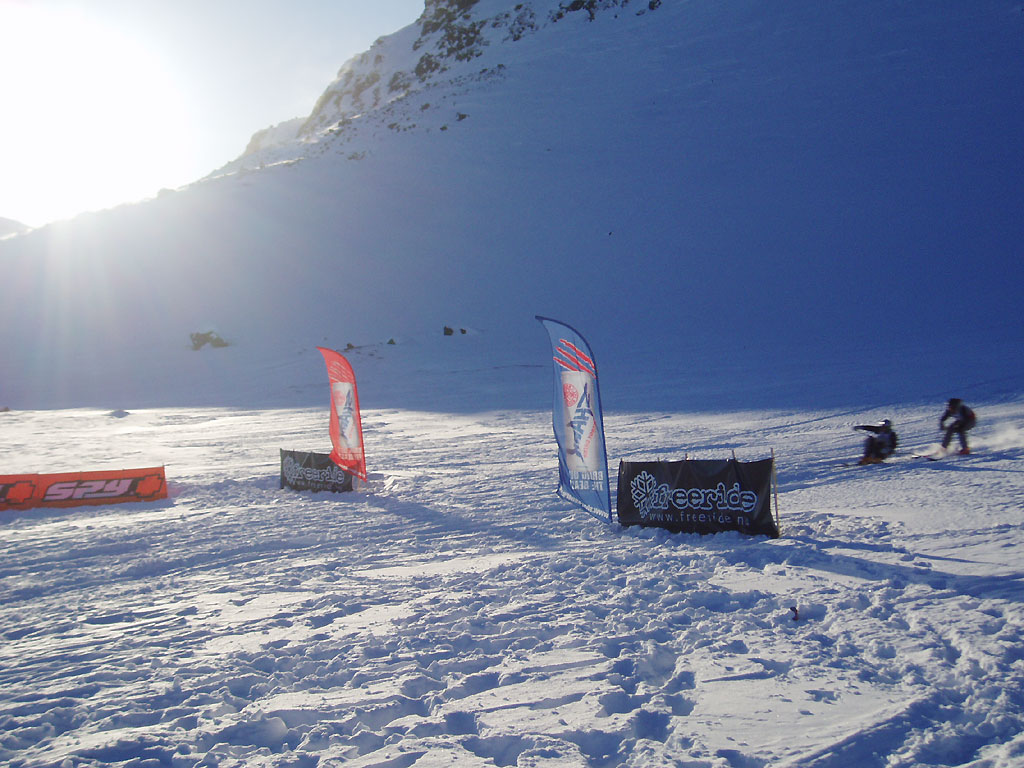 Freerideredaktion får heliskjuts upp och provåker banan innan kvalet drar igång. Förhållandena är perfekta för puderstörtlopp och efter ett skönt åk sladdar vi in i målområdet där partyhumöret är på topp. Mitt ute i en dal på kalfjället pumpar musiken. Solen är nästan lika het som grillen där hamburgare grillas. Allas blickar vänds snart upp mot starten.
