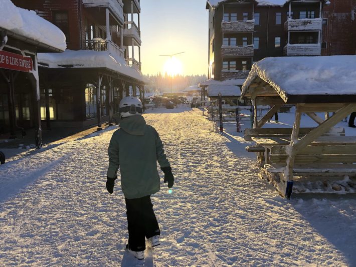 Boenden med riktigt ski in/ski out-läge byggs, så även restauranger, affärer, skidhyra och sportshop.