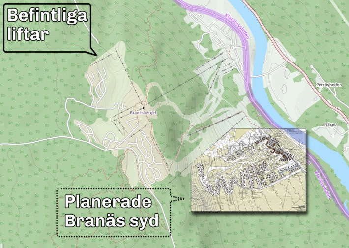 Branäs kommer att satsa bara 300 miljoner på ett nytt skidområde. Räknar man in hela investeringen med boenden och allt handlar det om drygt 1,5 miljard. Området går under arbetsnamnet Branäs syd, eftersom det kommer att ligga i den södra änden av systemet ner mot Klarälven vid Mattesdalen.